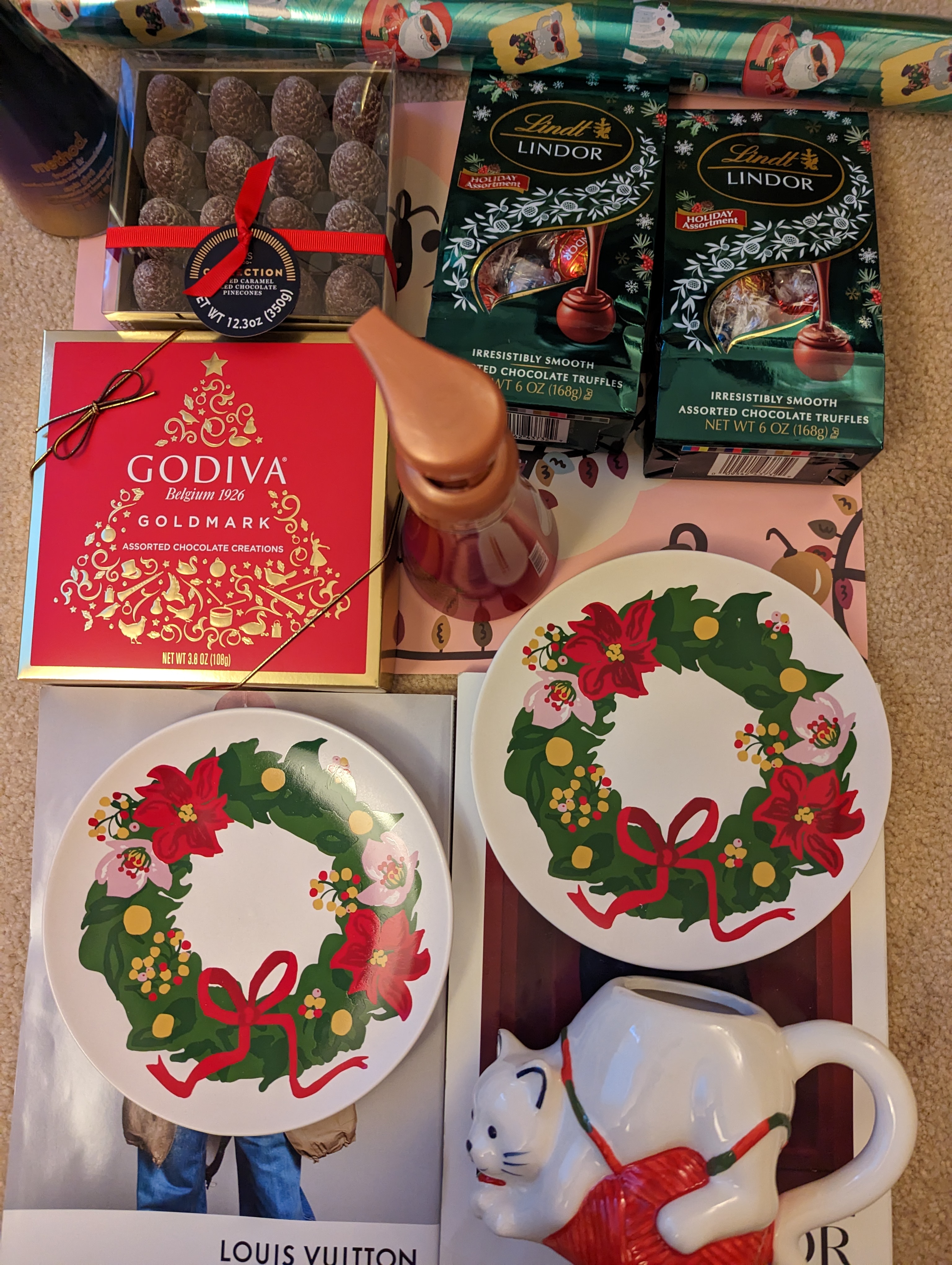 이 모든 것이 다 합쳐 20달러입니다. 고디바 초콜렛 상자 하나만 해도 정가가 15달러 정도 할텐데, 이 정도면 정말 득템했군요. 크리스마스 직후에 갔으면 재고가 더 많았겠지만 사람이 너무 많아서 복잡했을 것 같기도 하고 이번주 내내 여기 비가 왔어서요, 저는 좀 천천히 갔어요. 이 정도면 충분히 만족합니다.