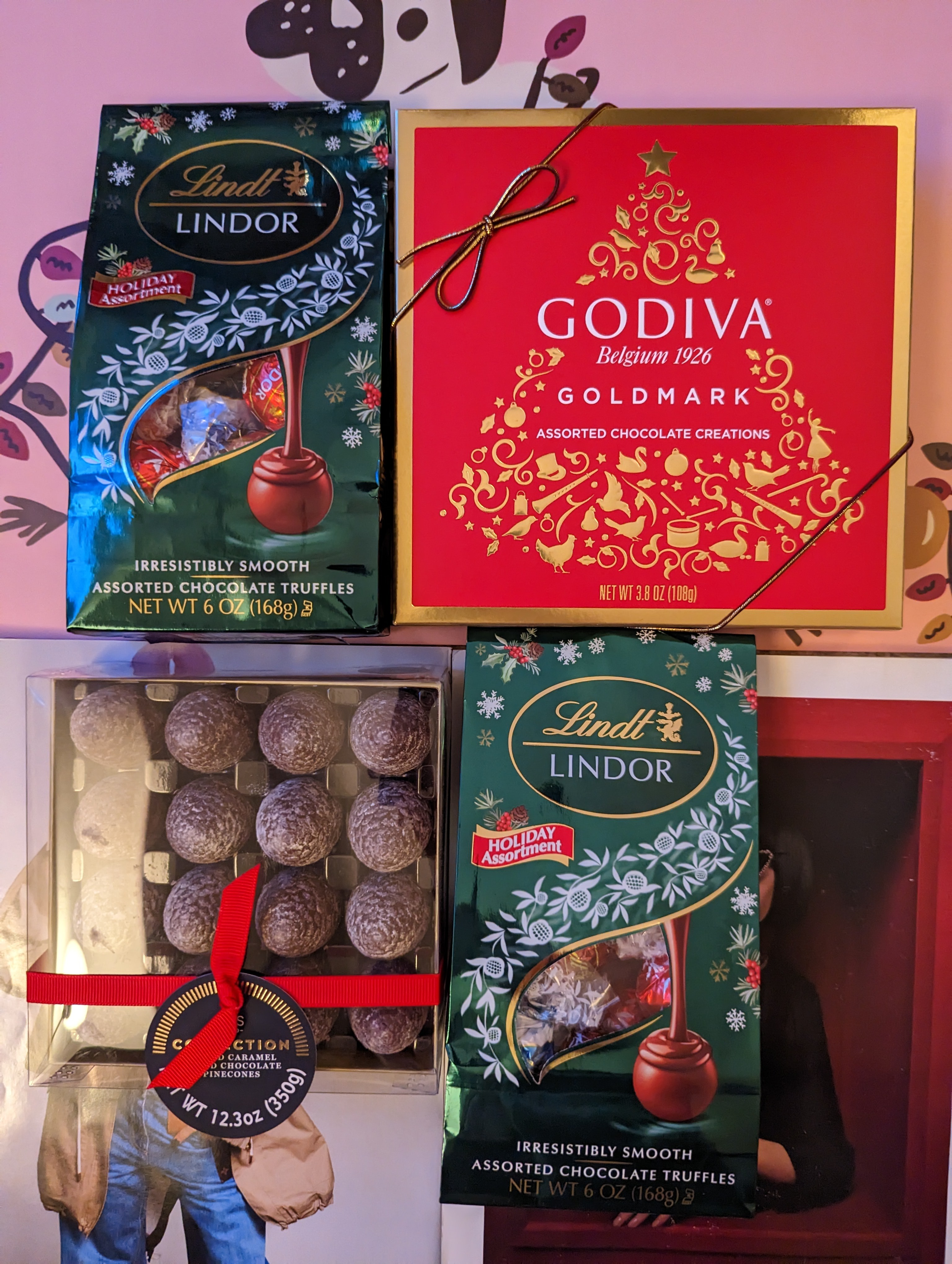 가장 추천드리는 크리스마스 초콜렛입니다. 이건 크리스마스가 지났어도 충분히 가치가 있는 제품이죠. 린트 168그램짜리 홀리데이 어소트먼트의 정가가 5달러 이상인데 겨우 1.68달러에 팔고 있어서 두개 집었습니다. 더 사오려다 두개에서 멈춘 이유는 단 한가지 입니다. 코스트코에서 린도르 세일할때도 이 정도 가격이거든요. 특히 곧 발렌타인 데이라서 아마 대대적으로 초콜렛 판매가 시작될테고요. 초콜렛도 신선하게 먹어야 맛있으니까요. 밀크 초콜렛, 스니커두들, 화이트 초콜렛 이 세가지 맛이 들어있군요. 스니커두들은 달달한 진저브레드 쿠키맛 생각하시면 됩니다. 저는 엄청 좋아하는데 호불호가 좀 갈리는 맛이긴 해요.
