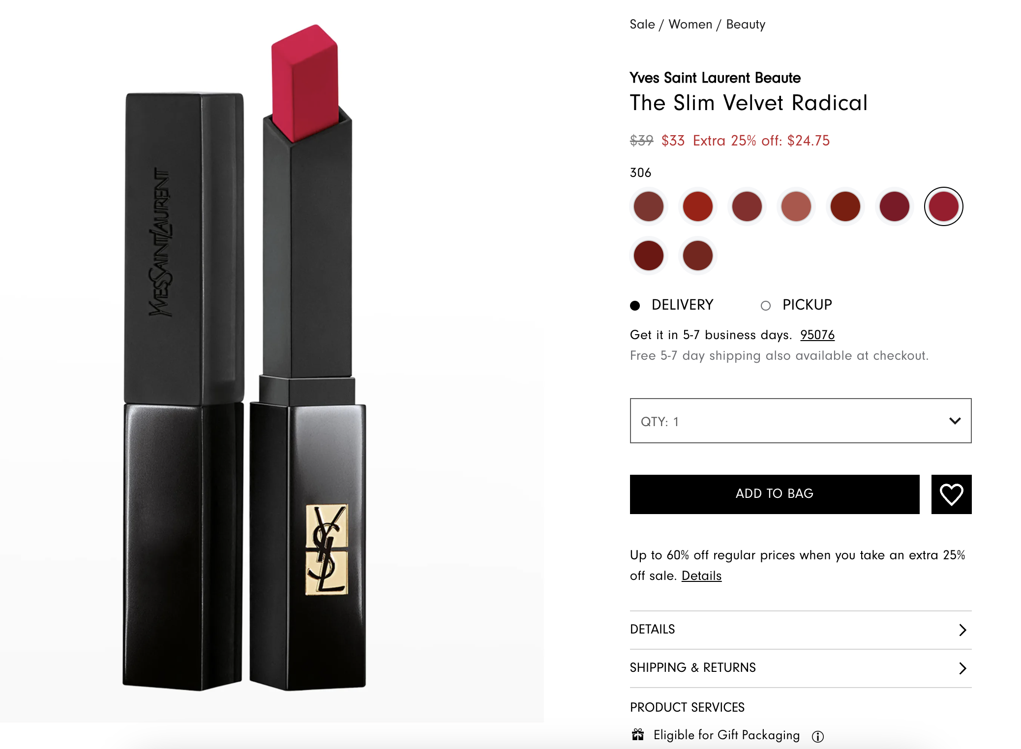 YSL 립스틱도 39달러 제품이 25달러 이하에요. 정말 무슨 광고글 같은데 그런거 아닙니다. 우연히 니먼마커스에서 좋은 명품 뷰티딜을 발견한 썰이랍니다. 매장가격은 인터넷과 다르거나 재고가 없을 수도 있으니 픽업 주문을 추천드립니다. 단, 픽업 자체도 준비하는데 5-7 영업일이 소요될 수 있으니 아예 한국에서 픽업주문을 하고 오시거나, 귀국 하기 전 넉넉하게 시간을 두고 주문하시는 것이 좋겠고요, 급하시면 그냥 매장에서 구입하시는 것도 방법이에요.