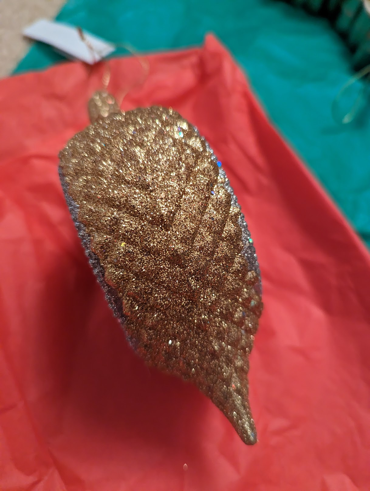 옆까지 꼼꼼하게 잘 마감되어 있어요. 다만 반짝이 오나먼트 특성상 손에 글리터가 묻어 나와요. 이건 반짝이는 오나먼트라면 어느 제품을 사도 어쩔 수 없는 부분이긴 하지요. 여기까지 소개해 드린 오나먼트는 전부 메이씨즈 자체 브랜드인 홀리데이 래인(Holiday Lane) 제품이에요. 자체 브랜드라 그런지 확실히 할인폭이 넘사벽입니다. 이 다섯개만 두고 보면 하나 가격으로 다섯개를 건진 셈이에요.