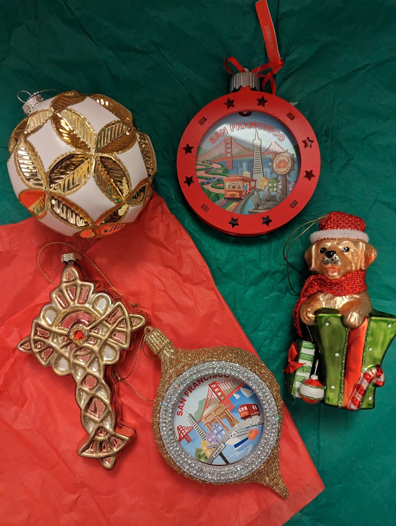 다음은 소장용으로 산 샌프란시스코 오나먼트입니다. 이건 엄청 블링블링한 느낌이네요. 정가 16달러 제품이고 3달러에 구입했습니다. LED 오나먼트랑은 그림이 비슷한 듯 하지만 살짝 달라요. 페인티드 레이디즈(The Painted Ladies)도 보이고 팰리스 오브 파인 아츠(Palace of Fine Arts)라던가 하이트 애쉬버리(Haight-Ashbury) 사인 등 샌프란시스코 랜드마크를 꼼꼼히 잘도 모아놨어요.