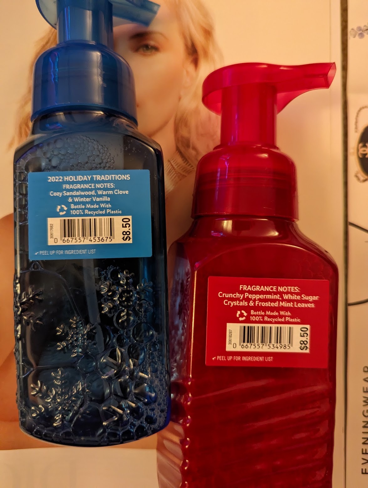 다음은 펌프형 손세정제와 처음으로 사본 클렌징바에요. 손세정제 역시 (특히나 요즘) 인기상품이라서 할인폭이 크지는 않았지만 50% 할인받아서 각각 4달러 정도에 구매했습니다. 차에 두고 쓰면 좋고요, 작년에 산 제품과 다르게 이건 보습효과가 있는 세정제라서 기대가 되네요. 웜바닐라 슈거(Warm Vanilla Sugar)와 바닐라빈 노엘(Vanilla Bean Noel)향이고요, 두통이면 일년 충분히 잘 쓸것 같아요. 바닐라빈 노엘은 이 포스팅에서 시향 리뷰를 했었는데요, 아무래도 손세정제이다보니 알콜이 많이 섞인 느낌이지만 충분히 기분좋게 쓸 수 있는 향입니다. 웜바닐라슈거도 같은 바닐라 계열이라서 크게 다르진 않아요. 바닐라를 엄청 좋아해서 이렇게 산건 아니고요, 재고가 많이 없어서 그나마 건진 제품입니다. 손세정만 잘해주면 됐죠, 뭐.