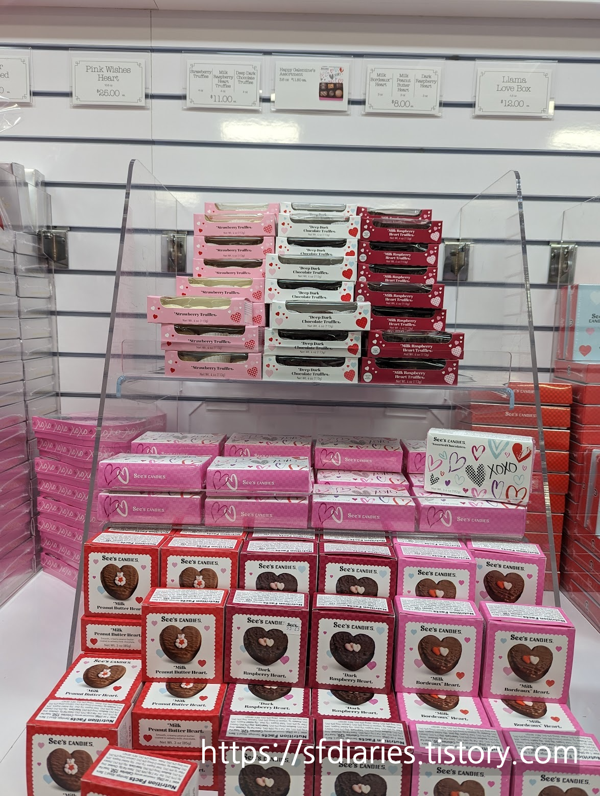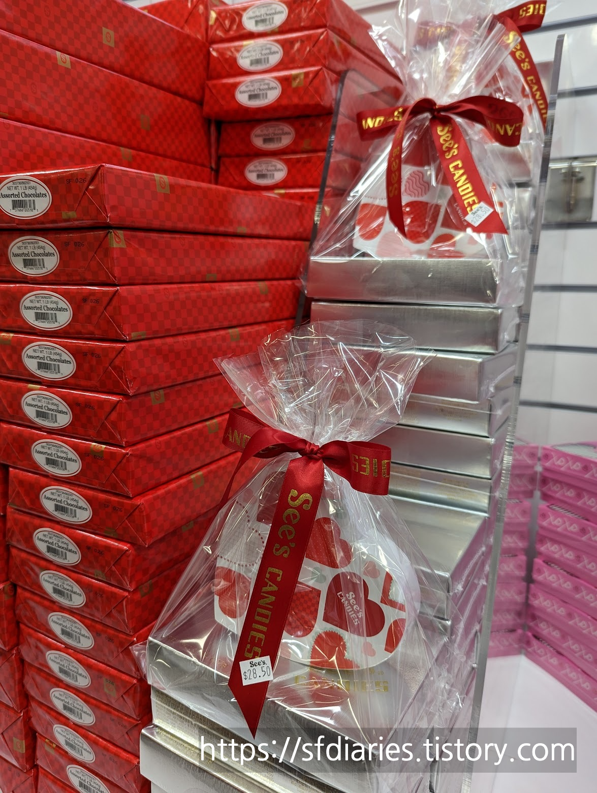 안녕하세요 오들입니다. 이제 슬슬 새해도 맞이했고 크리스마스 클리어런스 세일도 끝나가는데요 이 즈음에서 시작되는 것이 바로 발렌타인 데이 맞이에요. 미국의 백화점이나 마트에 지금 가시면 한쪽에서는 크리스마스 재고세일, 반대편에서는 발렌타인 데이 초콜렛 및 인테리어 용품 매대가 늘어서 있는 진풍경을 보실 수 있답니다. 마침 주말에 몰에 다녀와서요 이번엔 씨즈캔디(See's Candies)의 발렌타인 초콜렛을 소개해 드릴까 해요.
