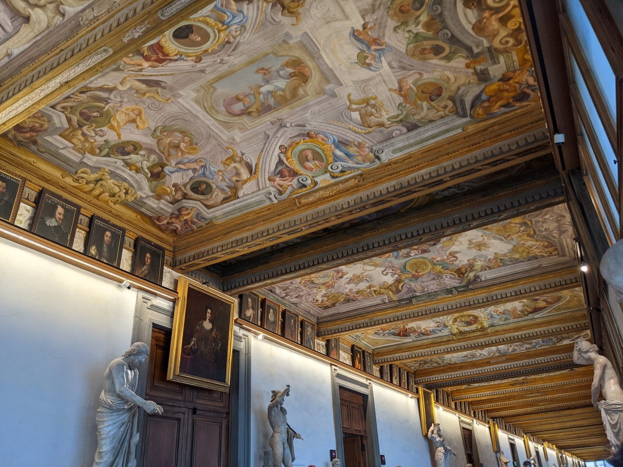 르네상스 미술을 좋아하신다면 꼭 가셔야 합니다. 티켓도 인터넷(uffizi.it/)으로 미리 예매하시는 것을 추천드려요. 최소 두시간은 할애하시는 것이 좋고 여유있게 보시려면 네시간 정도 생각하시는 것이 좋습니다. 저희는 두시간 정도 빠르게 보고 왔네요. 내부에 의자도 많이 있으니 중간중간 쉬었다 관람해보세요.