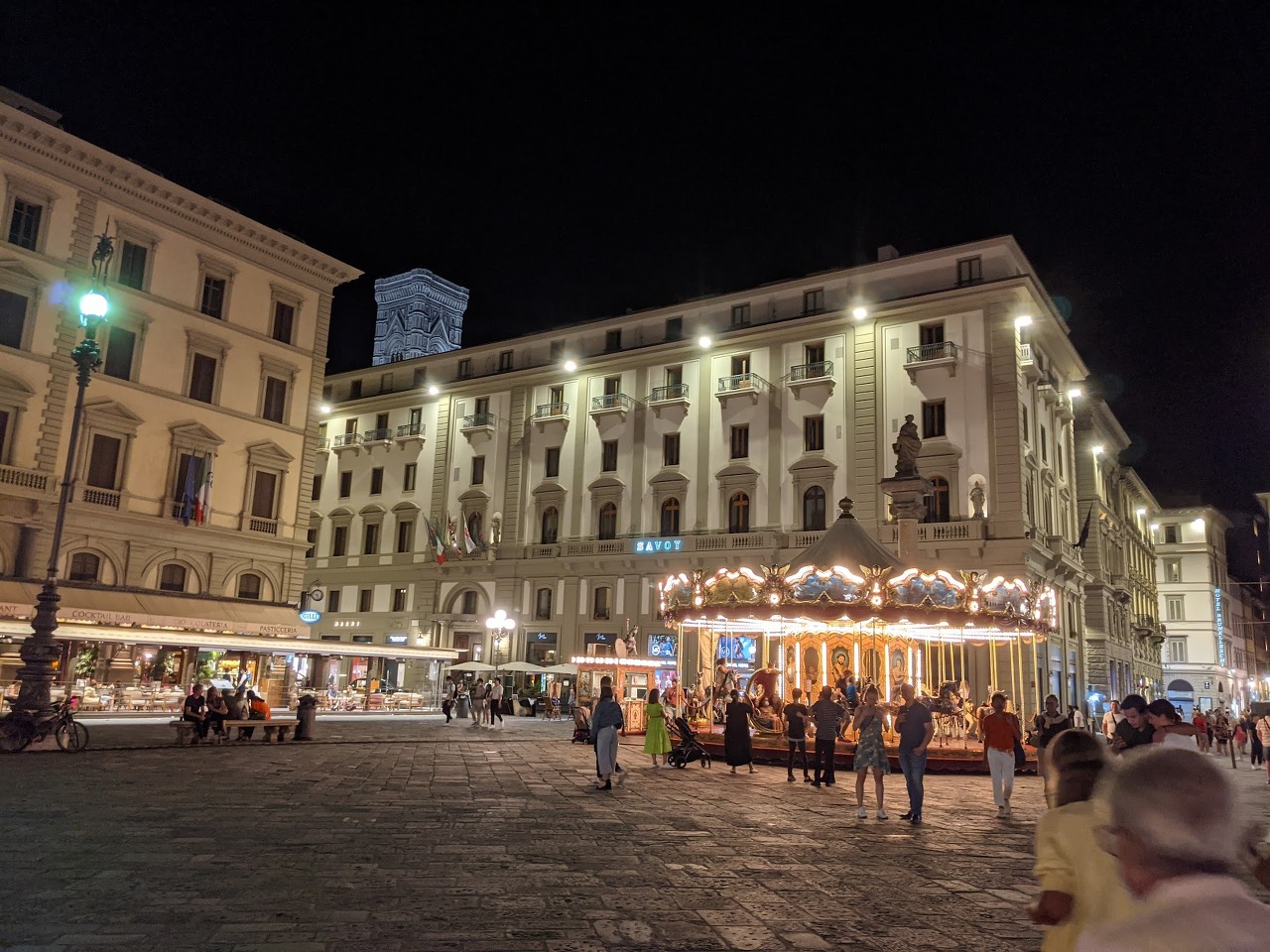 피렌체는 워낙 걸어다니기 좋은 곳이라서 저녁드시고 한두시간 정도 산책하셔도 사람들이 많고 안전해요. 피아자 델라 리퍼블리카의 조명을 켠 회전목마 앞에서 사진도 찍으시고 사람구경도 해보시면 어떨까요. 로맨틱한 셀카도 잘 나오는, 멋진 곳이랍니다.