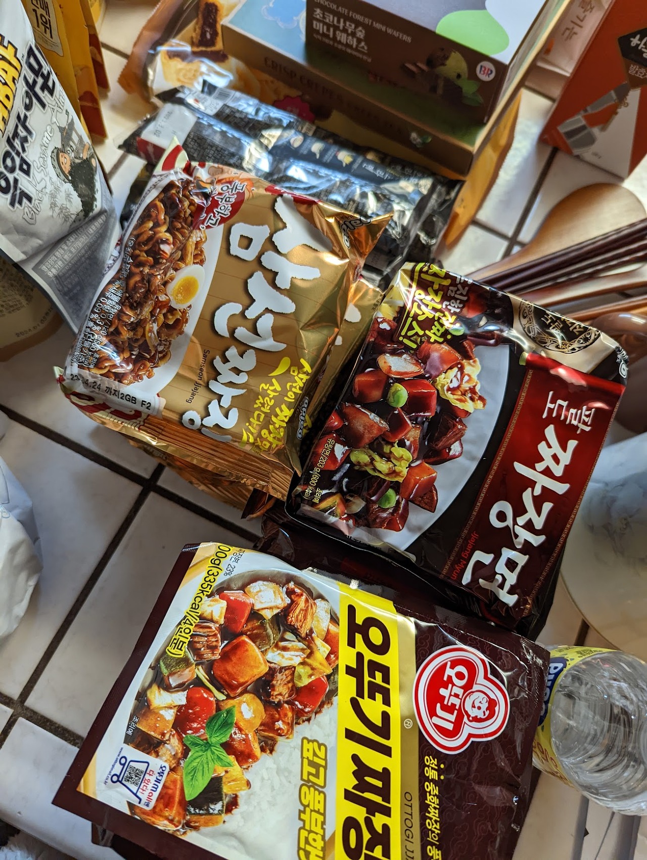 오뚜기 짜장가루, 짜장라면도 한인마트에서 팔지만 (비싸고) 가벼워서 사왔어요. 라면이 좀 애매하긴 하죠. 가벼워도 부피가 많이 나가니까요. 사진에는 작게 보이지만 옻칠 나무 밥주걱과 국자, 젓가락 세트도 한국에서 사오니까 좋더라고요. 여기서 이런 제품은 다이소나 가야 살 수 있는데 아무래도 여기 다이소보다는 한국 마트제품이 더 신뢰가 가니까요.