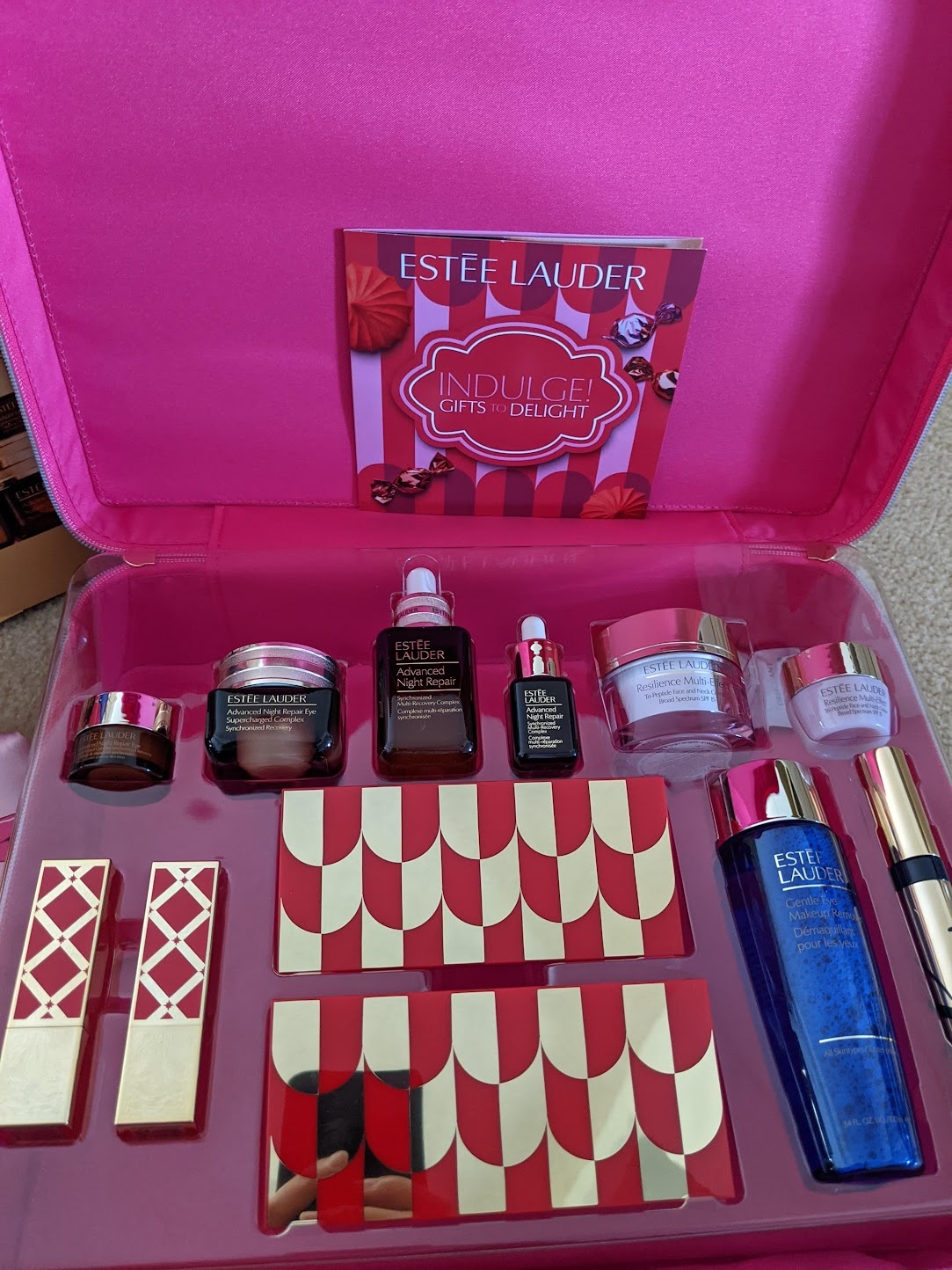 550달러 상당의 제품들이고 제가 샀을 때는 에스티로더 제품을 아무거나 구매하면 75달러(추가할인해서 60달러대)에 구입이 가능했어요. 가성비로 치면 랑콤이나 에스티로더나 둘다 어마무시하게 좋은 구성이에요. 굳이 이 두 홀리데이 박스를 비교해보자면 스킨케어 제품은 에스티로더가 더 많이 주고 메이크업은 랑콤이 더 나은 편입니다. 이건 사실 해마다 조금씩 바뀌는 구성이니까 직접 보시고 고르시는 게 정답일 것 같아요.
