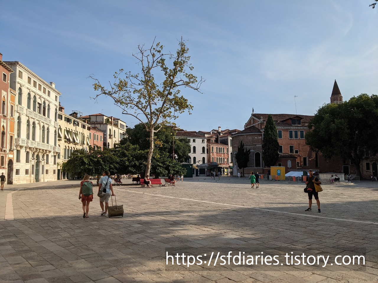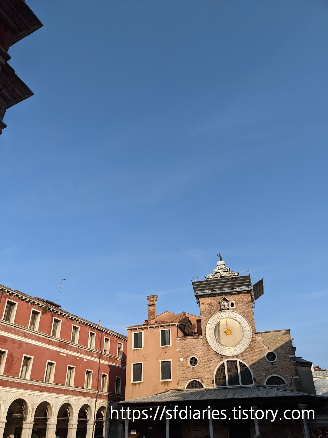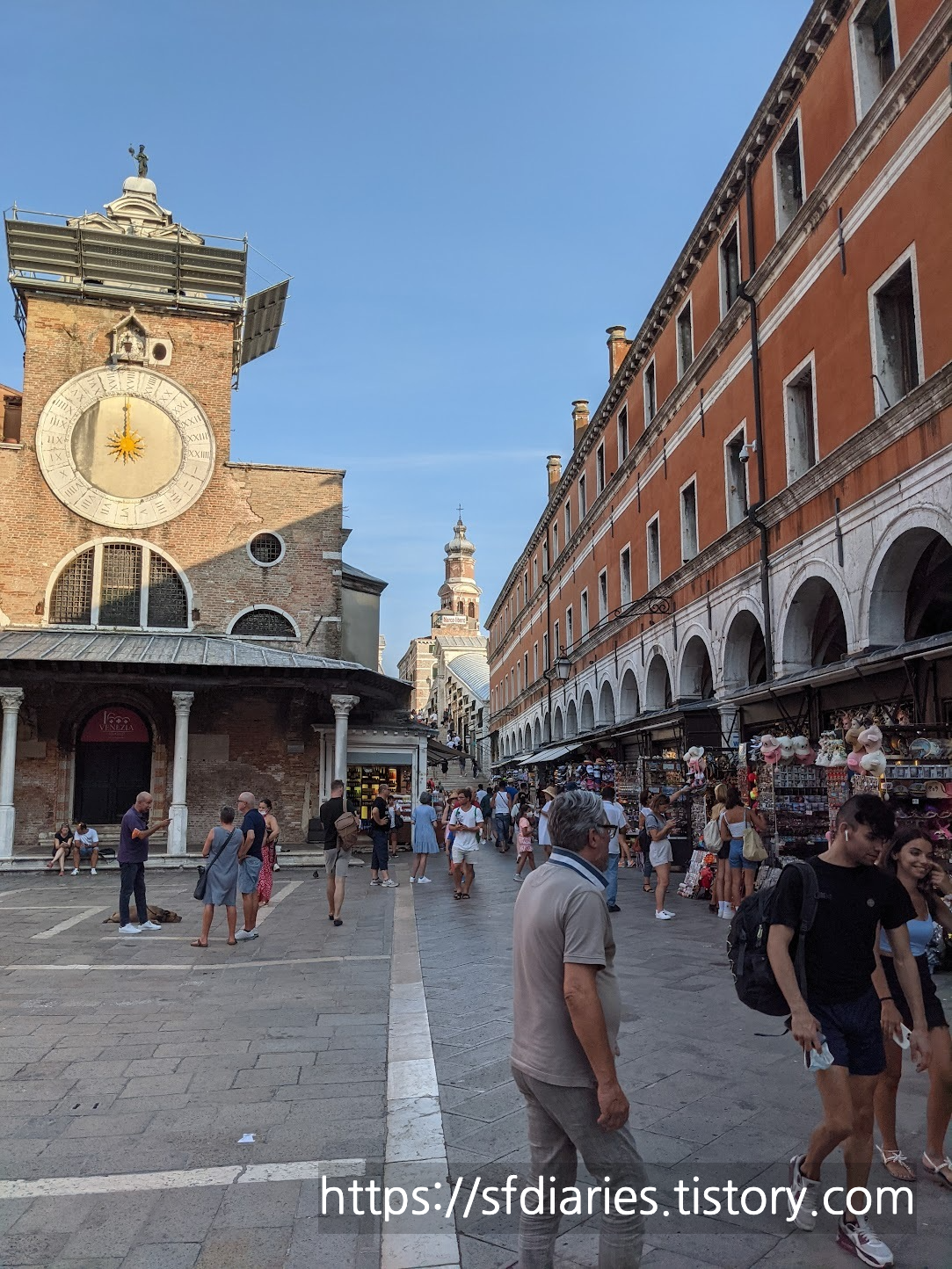 여기도 어느 광장의 한 부분인데요, 약간 휘어진 듯한 구조의 건물이 특이하네요. 베니스의 건축양식은 직선과 곡선이 어우러지는 모습이 인상적이었어요.