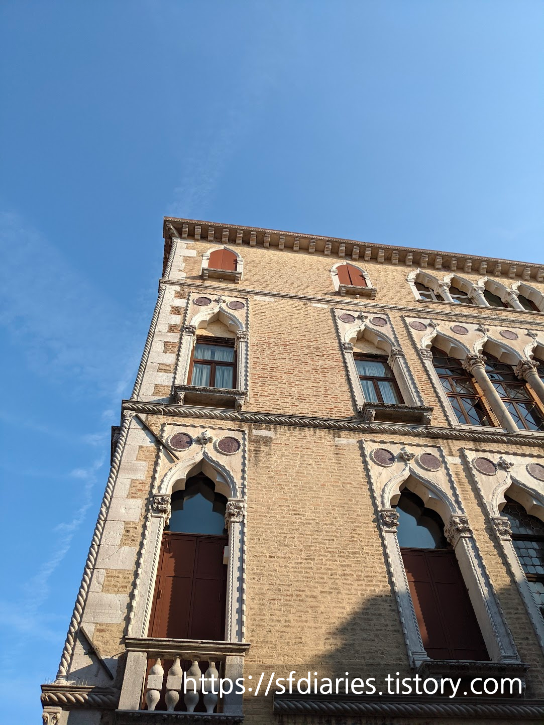 이름 모를 건물이지만 창문 모양이 화려해서 찍어 봤어요. 로미오와 줄리엣이 연상되는 로맨틱한 건축양식이에요. 실제로 로미오와 줄리엣의 배경이 되는 베로나는 베니스에서 가까운 편이죠.