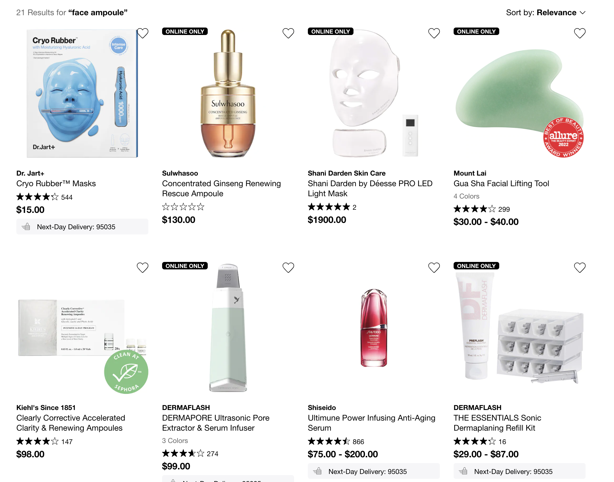 앰플 Face ampoule: 사실 앰플이라는 개념이 미국사람들에게는 아직 생소합니다. Face ampoule로 검색하시면 한국 제품이 대부분이고 이마저도 많이 수입되고 있지는 않아요. 앰플만큼 강력하지는 않지만 특정 성분을 원하거나 효과를 기대할 때는 세럼이나 오일을 쓴답니다.