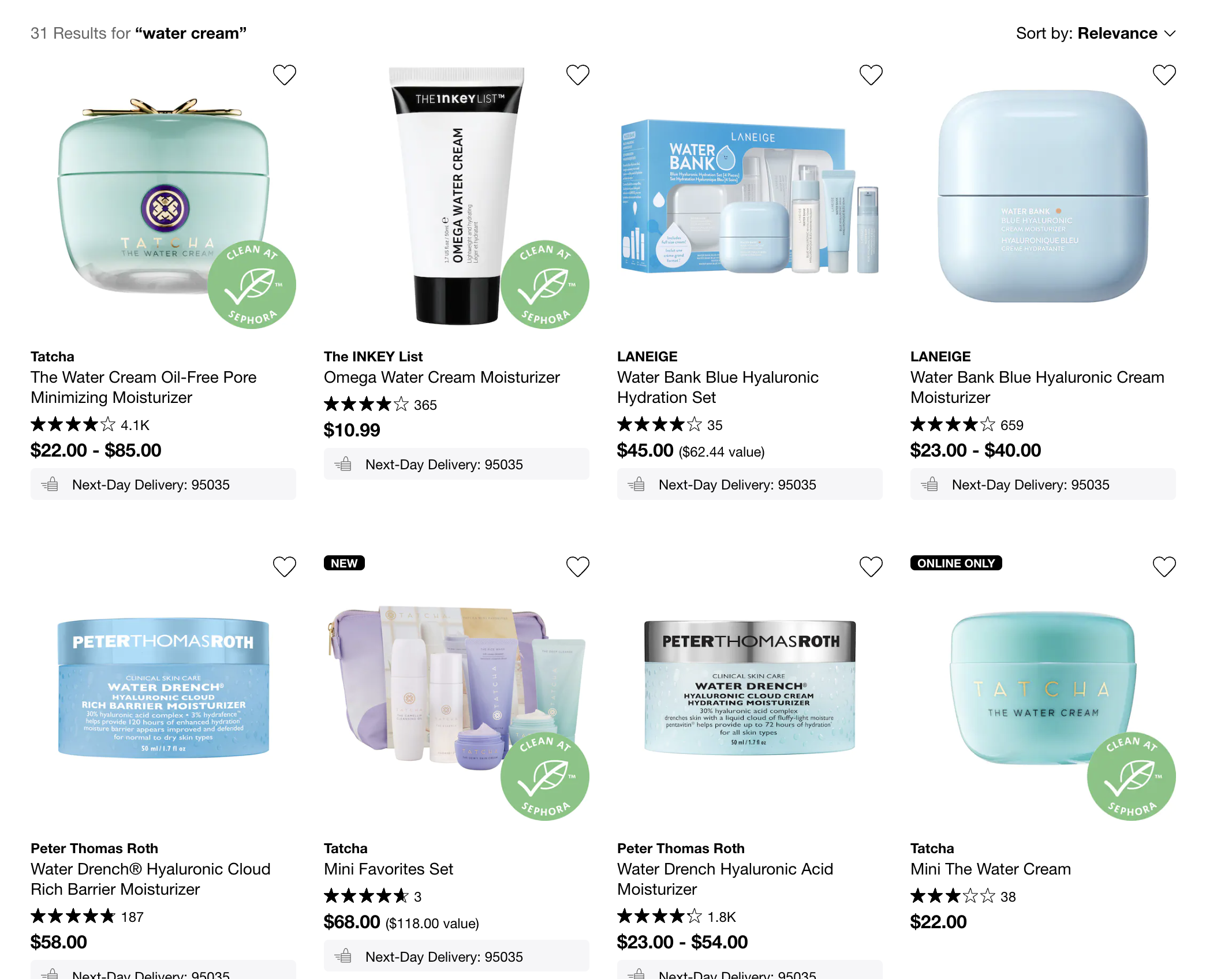 수분크림 Water cream: 역시 미국에서는 아직 생소한 개념이지만 하나 둘 출시되고 있네요. 라네즈 제품도 꾸준히 인기가 있고 다른 미국 브랜드들도 트렌드를 따라 조금씩 시도해 보고 있어요.