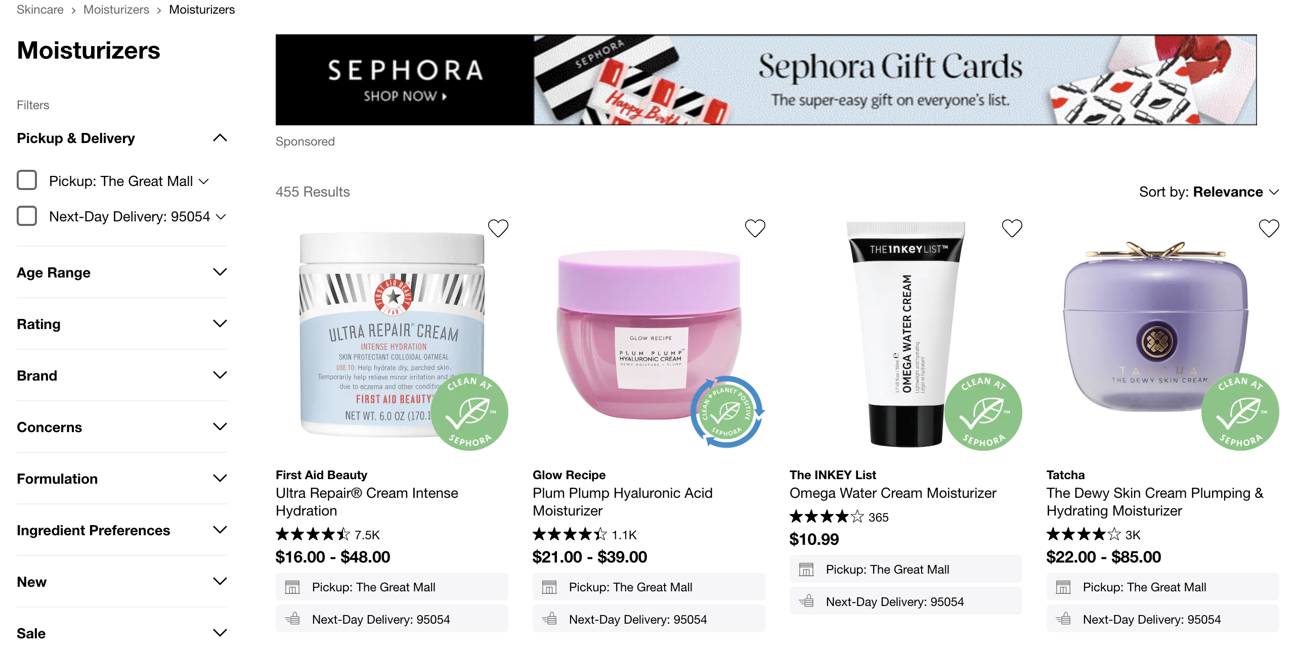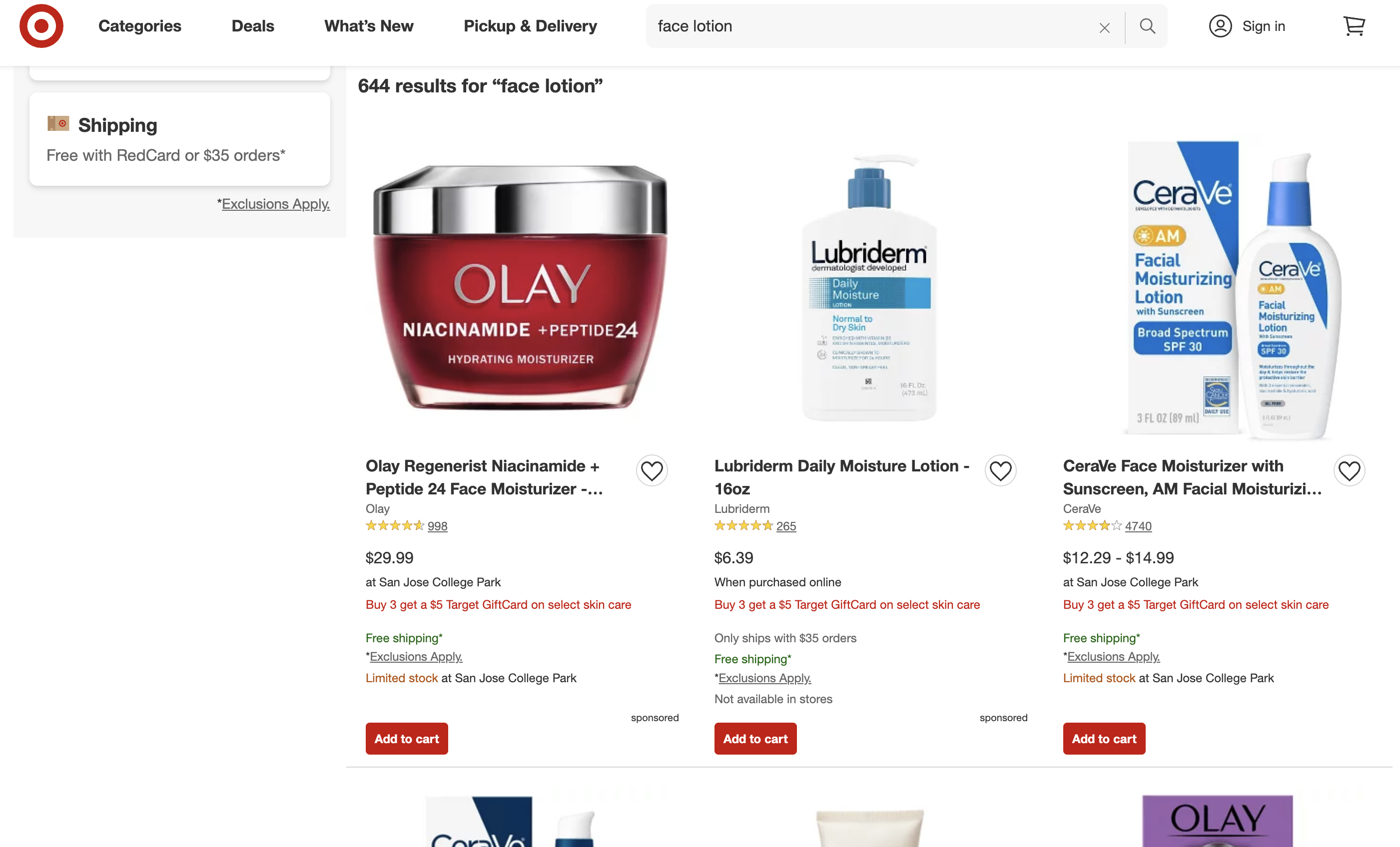 크림 Facial/face cream, moisturizer: 미국 스킨케어 제품의 대부분은 크림제형입니다. 가장 종류가 많고 그냥 face moisturizer로 검색해도 크림을 보여줄 정도니까요.