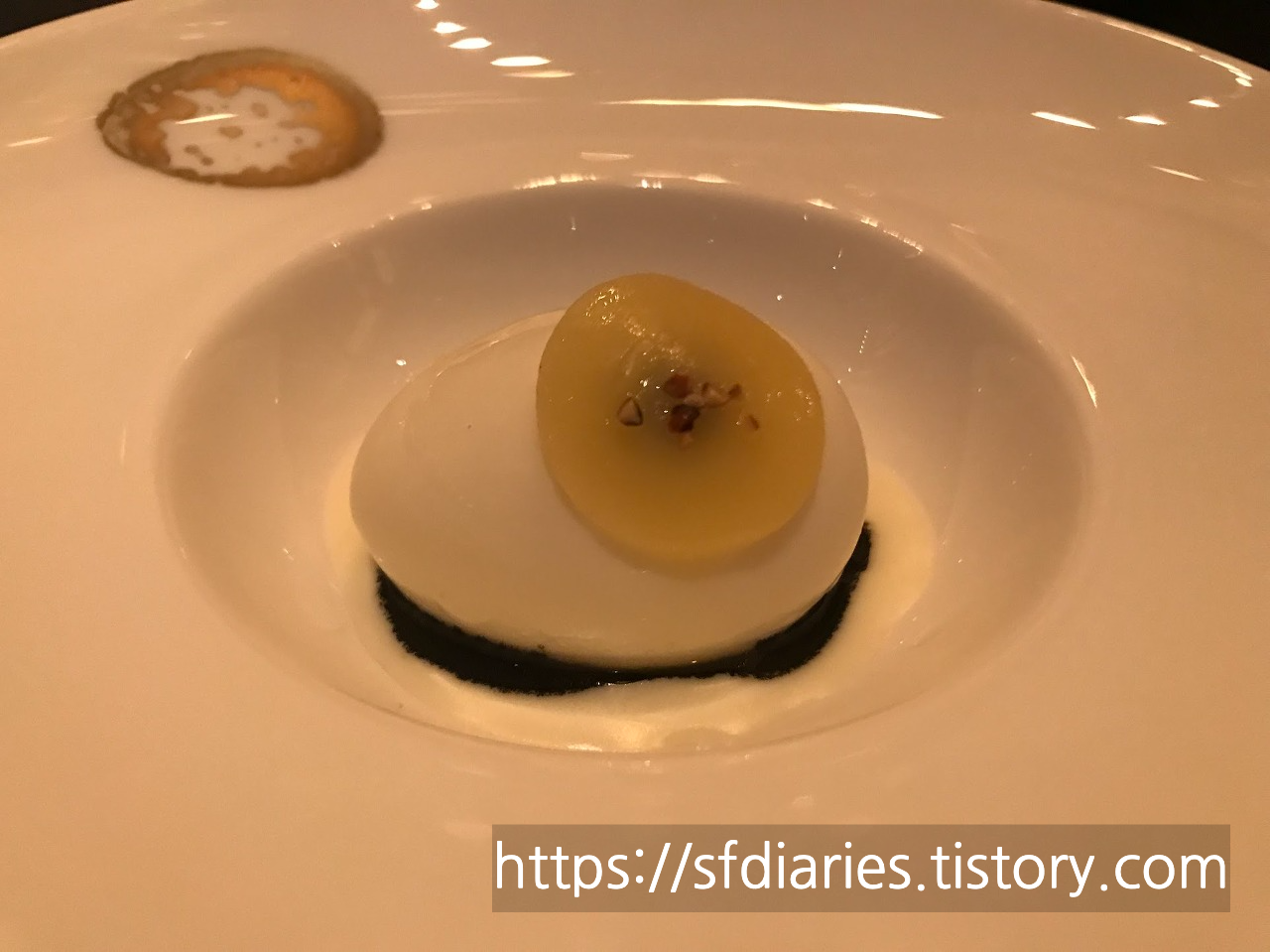 다시 음식 얘기로 돌아가서, 프렌치 파인다이닝답게 퓨레와 젤리, 폼과 무스를 적재적소에 자유자재로 써주셔서 코스마다 맛보는 즐거움이 가득했습니다. 식기도 하나하나 신경써서 고른 것이 느껴졌고 전체적으로 코스의 흐름이 자연스러운 것이 셰프님의 관록이 절로 느껴졌어요.