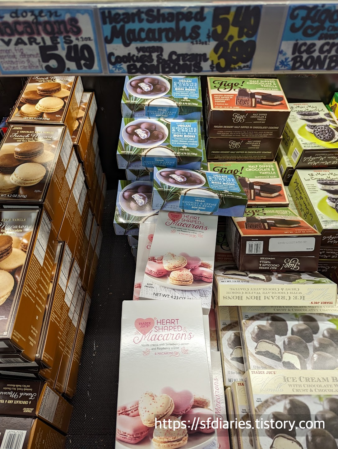 트레이더 조스 마카롱도 장수 인기상품이죠. 발렌타인 즈음에는 이렇게 하트 모양으로도 나와요. 좀 달아서 자주 사먹진 않지만 가볍게 먹기 좋습니다. 가격은 5.49고요, 당연히 최고급 마카롱은 아니지만 이 가격에 이 정도 마카롱이면 괜찮다고 생각해요.