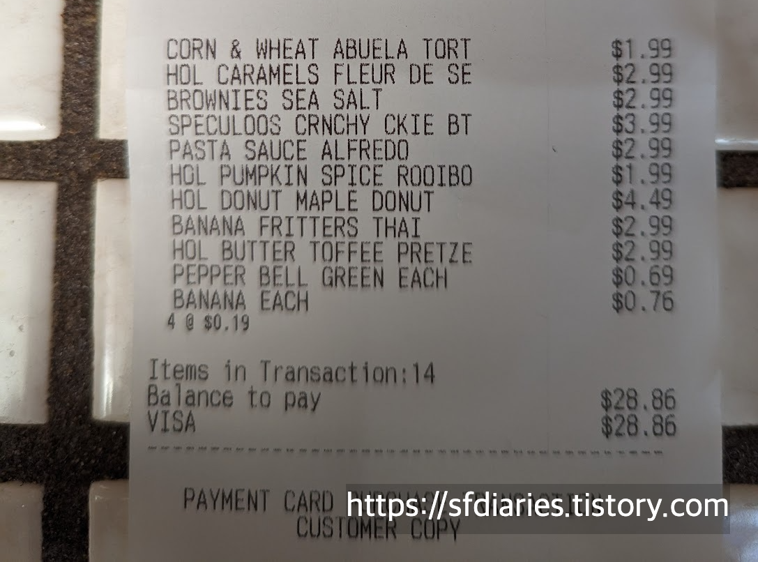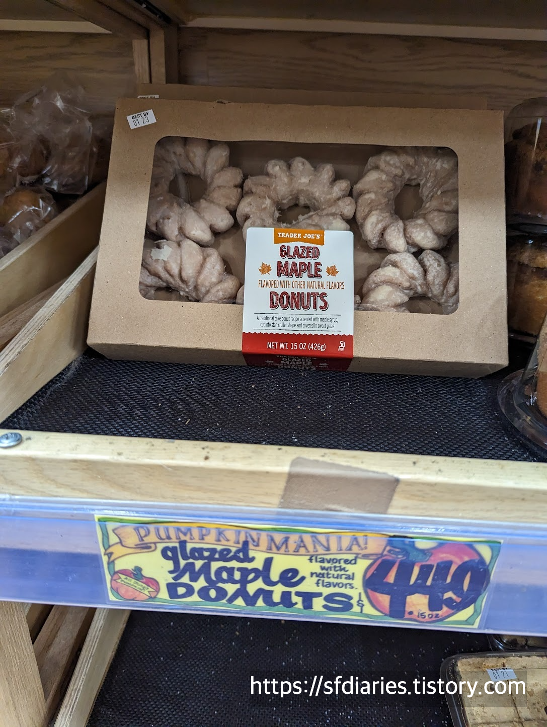 메이플 도넛(Glazed maple donuts)도 역시 시즌 한정이고 여기서 너무 유명한 제품인데요, 계산대 직원도 이거 진짜 맛있다고 칭찬을 아끼지 않더군요. 트레이더조스는 일부러 수다쟁이 직원들을 뽑아서 손님들에게 친근감을 주려고 하는데요, 제품력도 탄탄하지만 이런 디테일한 마케팅 전략도 한몫 하는 것 같아요. 아쉽게도 제 입맛에는 좀 많이 달아서 재구매는 못할 것 같아요. 하지만 미국인들이 입을 모아 추천하는 제품이라 한번 시도해 보길 잘했다고 생각해요.