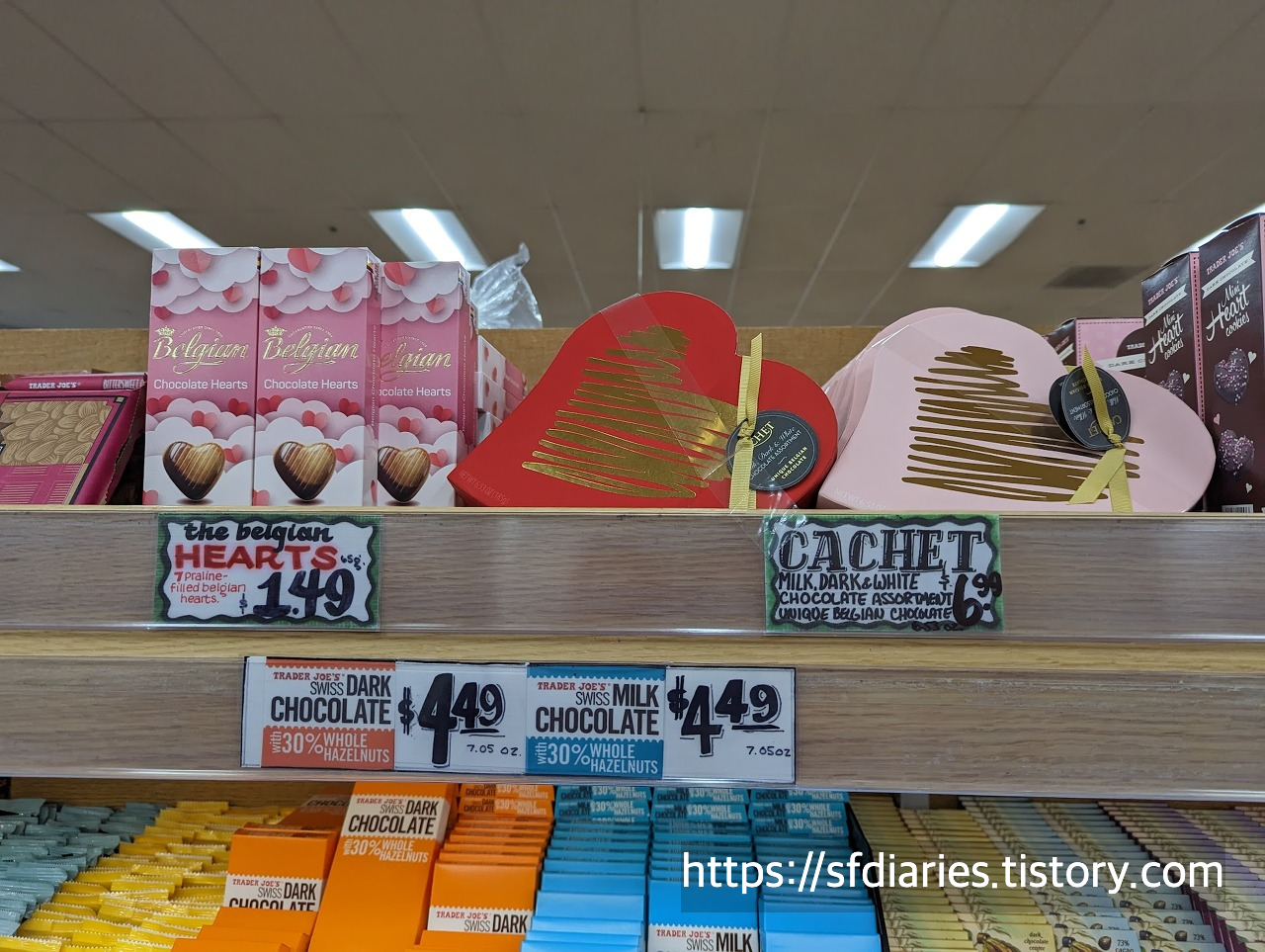 기왕 트레이더조스 이야기 하는 김에 요즘 나오는 발렌타인 과자 및 다른 인기상품들도 보여드릴게요. 다크초콜렛 미니하트 쿠키(Dark chocolate mini heart cookies)는 쇼트브레드를 다크 초콜렛으로 코팅했다고 하네요. 이것도 엄청 맛있데요. 예뻐서 구경만 하고 왔는데 다음에 가면 사야겠네요.