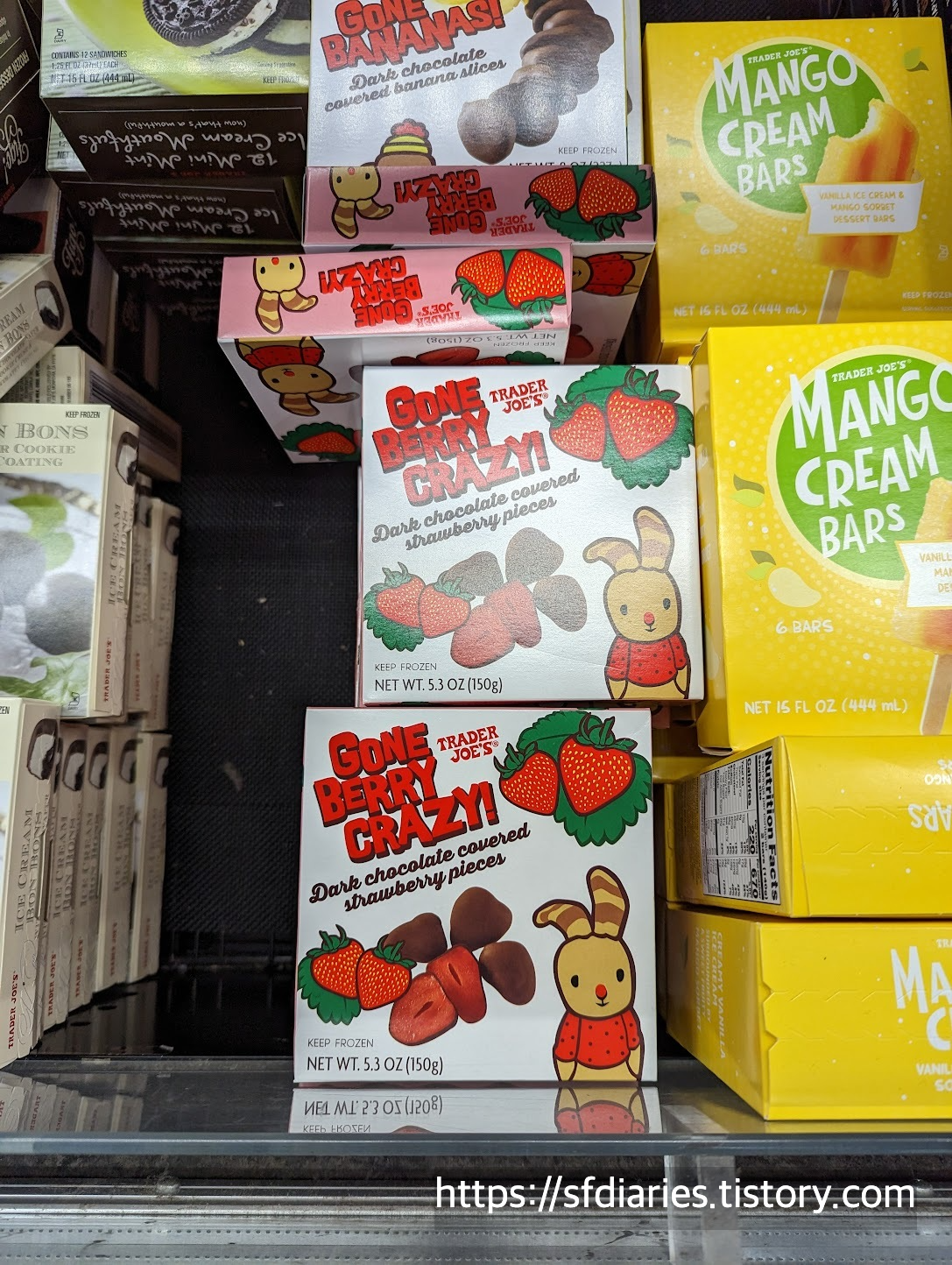 이건 냉동식품 코너에 있던 초콜렛 딸기(Gone berry crazy)에요. 너무 사고 싶었는데 미국 딸기에 실망한 적이 너무 많아서 그냥 내려놨습니다. 미국 딸기는 물이 너무 많고 달지도 않아서 정말 별로거든요. 지금 포스팅 하면서 리뷰 찾아보니까 상당히 맛있다고 합니다. 언제 한번 용기를 내서 시도해봐야겠어요.
