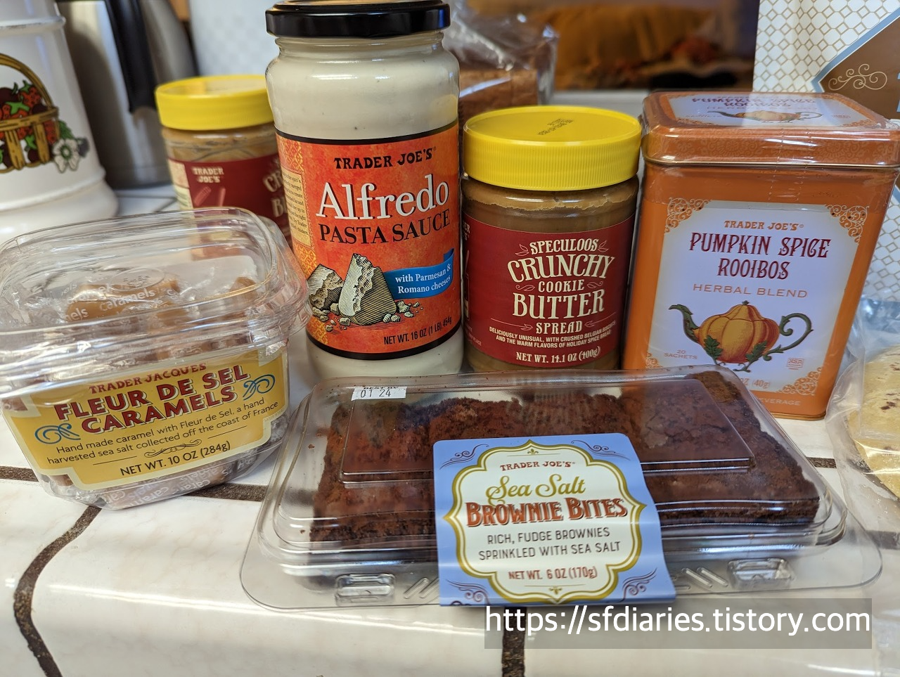 가운데 보이는 쿠키버터(Speculoos Crunchy Cookie Butter Spread)는 매니아층이 있을 정도로 유명한 제품이에요. 비스코프 쿠키맛을 100% 재현해낸 스프레드이고 가격은 4달러입니다. 트레이더조스는 거의 자체 브랜드 상품만 취급해서 비스코프 브랜딩은 안보이지만 자신있게 맛보장 드릴 수 있는 아이입니다. 네덜란드에서 만들어온 제품이고 기념품으로도 최고에요. 크런치/크리미 두가지 종류 다 있는데 저희는 작은 쿠키 조각이 크런치 좋아해서 이걸로 삽니다. 빵에 발라먹어도 좋고요 저는 그래햄 크래커에도 발라먹으니까 맛있더라고요. 한국에서는 에이스나 참크래커와 궁합이 잘 맞겠네요. 솔트 카라멜(Fleur de sel caramels)는 인기를 끌다가 단종됐었는데 최근에 다시 나왔어요! 어쩌면 계절 한정 아이템 같다는 소문도 있습니다. 단짠단짠 너무 맛있습니다. 이렇게 카라멜 버젼도 있고 유리병에 담긴 소스 버젼도 나와요. 강력 추천이에요. 파스타 소스는 갑자기 미국식 크림 파스타가 먹고 싶어서 검색해봤더니 다들 트레이더조스 알프레도 소스가 맛있다고 입을 모아 칭찬하더군요.