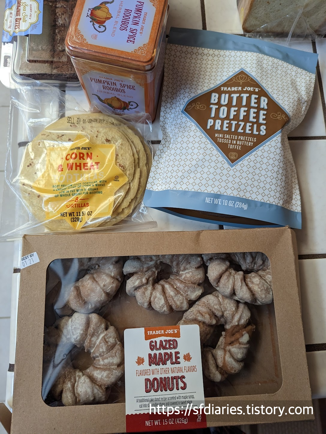 펌프킨 스파이스 루이보스 티는 틴이 예뻐서 사봤는데요, 맛은 살짝 스파이시한, 무난한 루이보스에요. 딱히 펌프킨 향은 안나요. 토르티야는 가격도 괜찮고 맛도 좋아서 트레이더 조스 가면 갈때마다 하나씩 사옵니다. 다른 슈퍼에서는 3달러 심지어 5달러까지도 하는데 여기선 2달러면 살 수 있어요.
