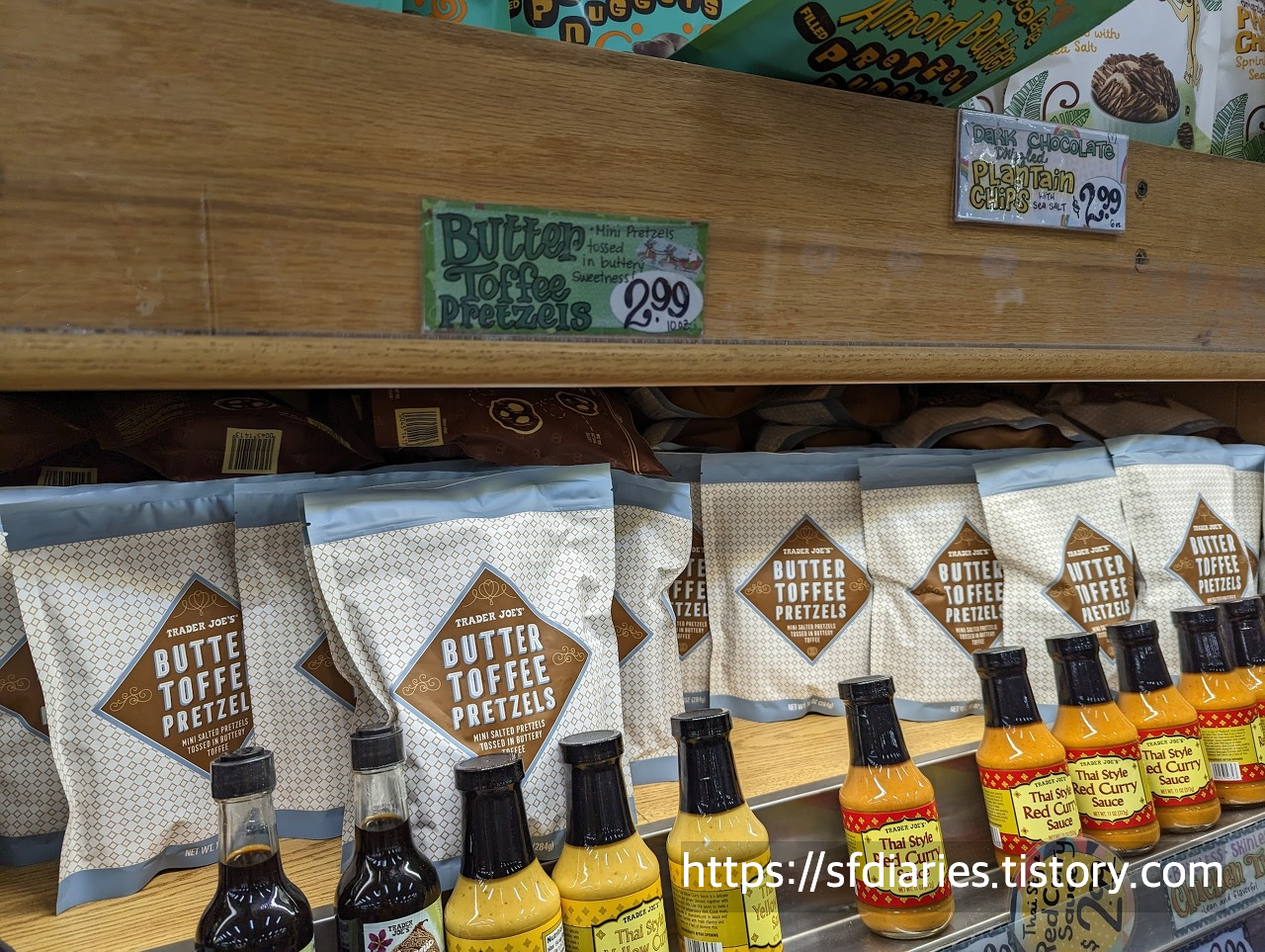 트레이더조스의 매력은 같은 가격의 미국 과자들에 비해 훨씬 고급스러운 맛을 선사한다는 점 같아요. 미국 과자는 좀 인공적이고 지나치게 자극적인 맛이 흔한데 트레이더조스 과자는 그런 느낌이 없어요. 다만, 굉장히 실험적인 맛도 과감하게 출시되니까요, 모든 제품이 다 맛있는 건 아니기 때문에 이렇게 검증된 제품 위주로 사보시는 게 좋아요.