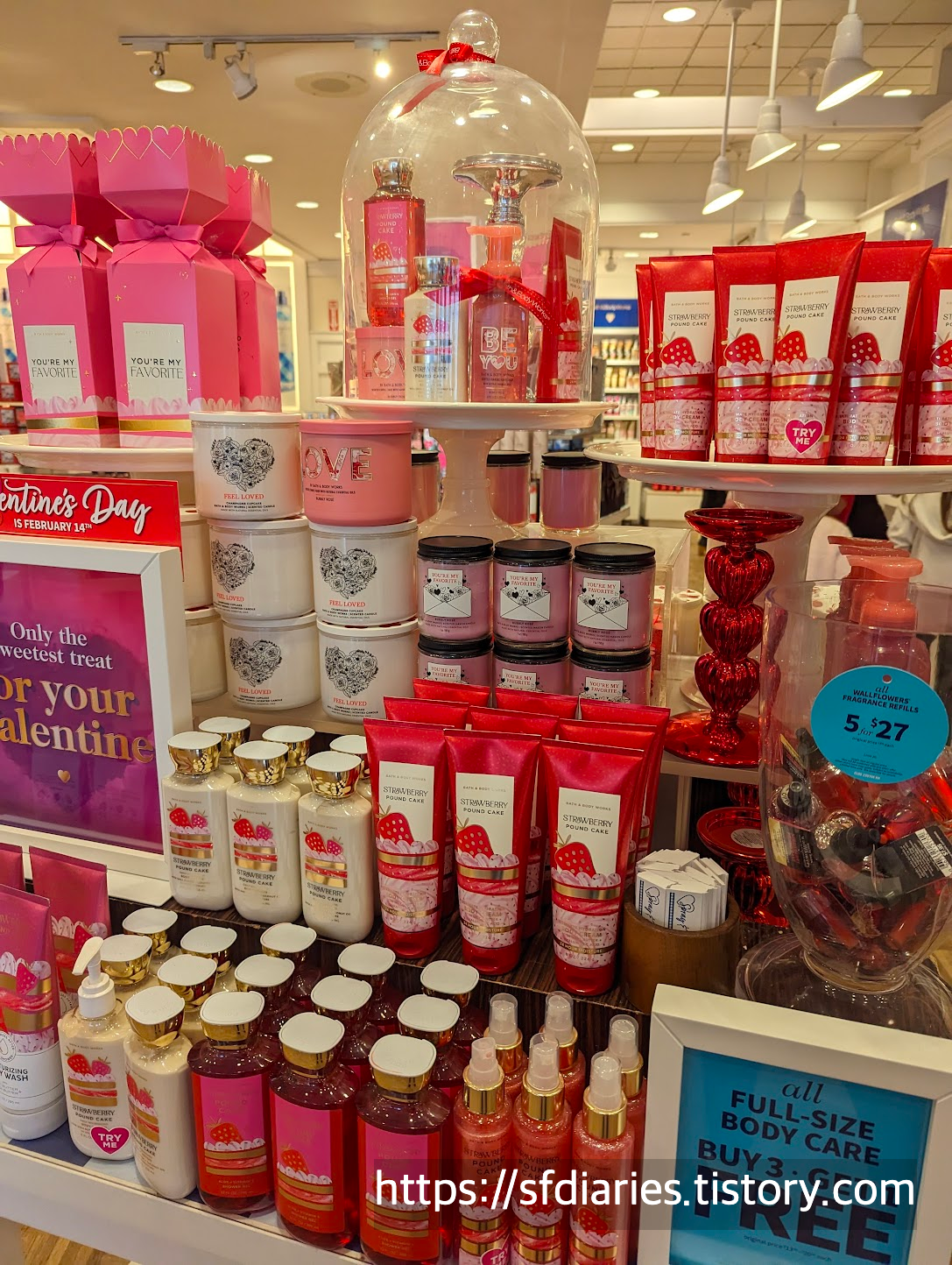 안녕하세요 오들입니다. 지난 주말 배쓰앤바디웍스에서 이틀 한정으로 프래그런스 미스트 세일을 해서 잠깐 다녀왔는데요, 연말연시 클리어런스 세일이 끝나고 출시된 신상이 너무 예뻐서 보여드리려고 찍어왔어요. 통상적으로 배바웍은 연말에 세일로 재고를 정리하자마자 밸런타인에 맞춰서 예쁜 신상을 바로 출시하는 전략을 쓰는데요, 연말세일처럼 가격이 파격적이진 않지만 품목을 바꿔가면서 세일을 하니까 한두번씩 또 가게 되네요.