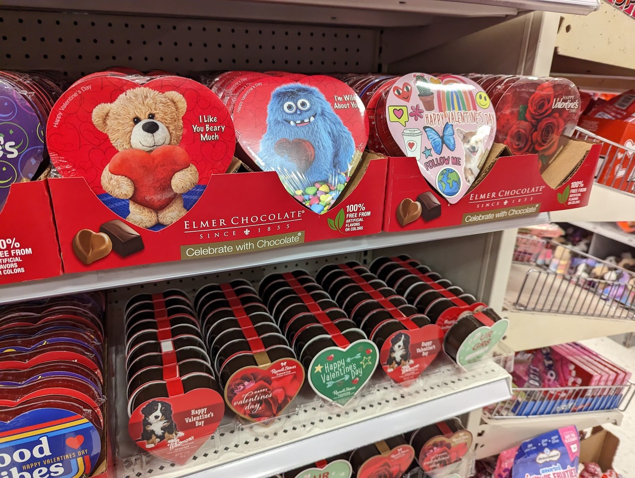 엘머 초콜렛이라는 곳에서도 약속이라도 한듯 똑같은 크기의 하트모양 초콜렛 상자를 팔고 있네요. 카드 한장에 6달러인데 그걸 사느니 이거 하나로 초콜렛까지 선물하기 딱인것 같아요. 리뷰 보니까 맛도 괜찮다고 하네요. 카라멜, 스트로베리 크림, 오렌지 크림 등이 들어 있다고 합니다.