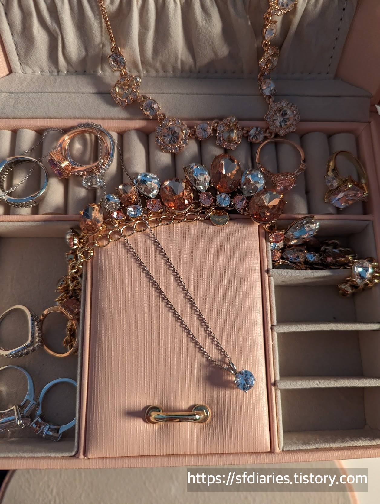 오늘 보여드린 제품들은 다 제이씨페니에서 25달러 이하에 샀어요. 발렌타인 기간 외에도 가끔 세일을 해주니까요, 여행하시는 도시에 제이씨페니가 있다면 들러보시기를 추천드려요. 참고로 쥬얼리 제품은 발렌타인 데이가 지났다고 클러어런스 세일을 하지는 않고요, 이 가격이 연중 최저입니다. 오히려 발렌타인 데이 후에는 가격이 정상가로 되돌아오니까요, 이 시기에 미국에 오신다면 참고해 주세요. 1년동안 랩그로운 링 및 목걸이를 착용해 본 솔직한 저의 소감은요, 정말 만족이에요. 특히 샌프란시스코처럼 흉흉한 소식이 자주 들리는 곳에서 잃어버리거나 도둑맞을까 걱정하지 않고 편하게 착용 가능하다는 점이 정말 큰 메리트 입니다. 반짝임도 정말 예쁘고요, 손 씻을때 굳이 빼지 않아도 신경쓰이지 않아 여러모로 심신안정에 좋답니다. 저처럼 다양한 디자인의 쥬얼리를 기분에 따라 바꿔서 착용하는 것을 선호하시는 분들께 정말 강력 추천드리고요, 시그니처 디자인 하나만 쓰는 분들도 여행용이나 비상용으로 고려해 보시면 좋을 것 같아요. 이렇게 써놓고 보니까 제이씨페니에서 알바라도 해보고 싶네요. 즐거운 쇼핑 되시고요, 읽어주셔서 감사해요.