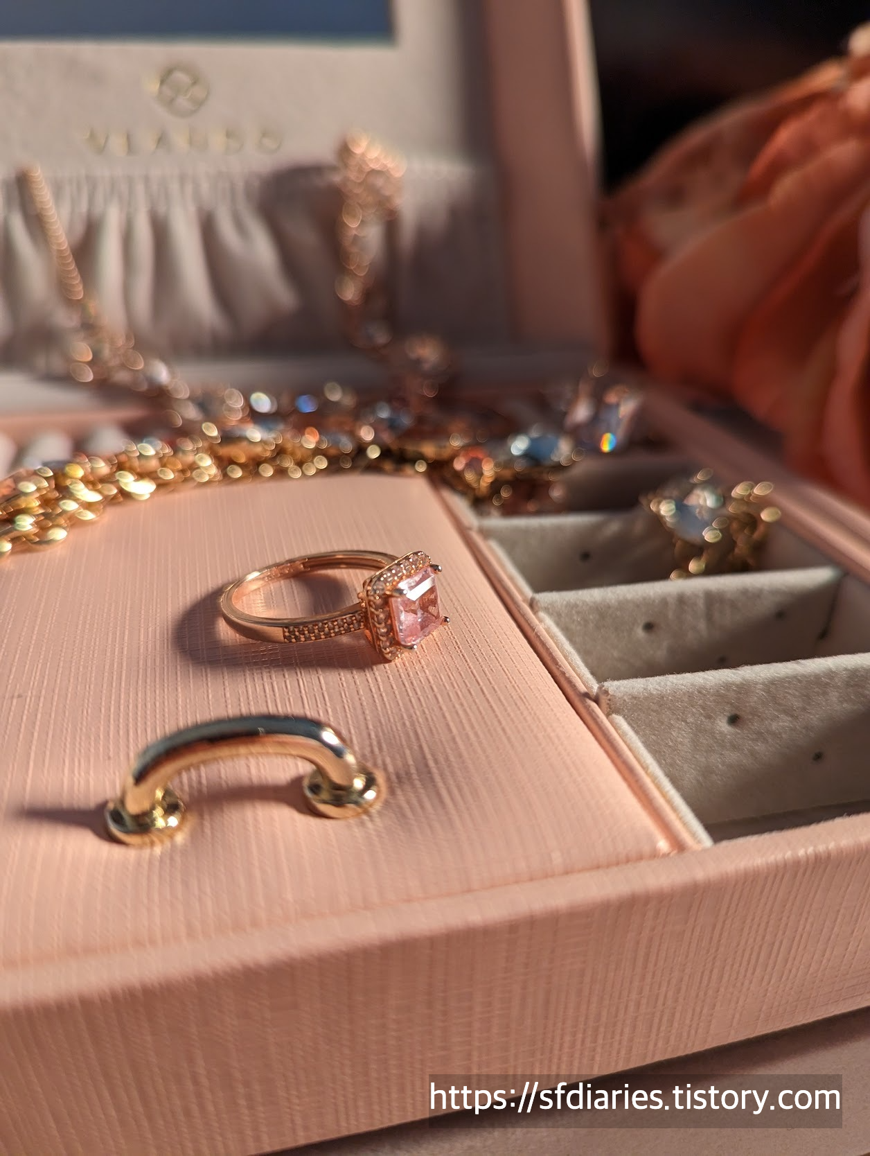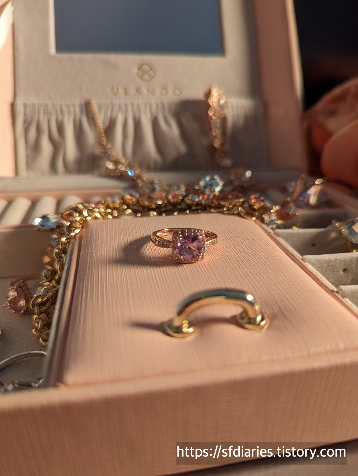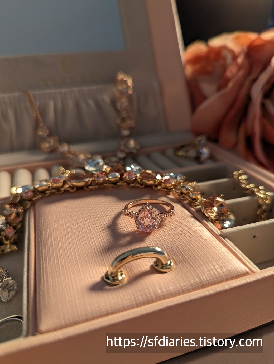 짜잔, 핑크 샴페인 사파이어링과 매치하면 이런 모습이랍니다. 로즈골드와 실버인데도 너무 잘 어울려서 특별한 날에 기분내기 좋아요.