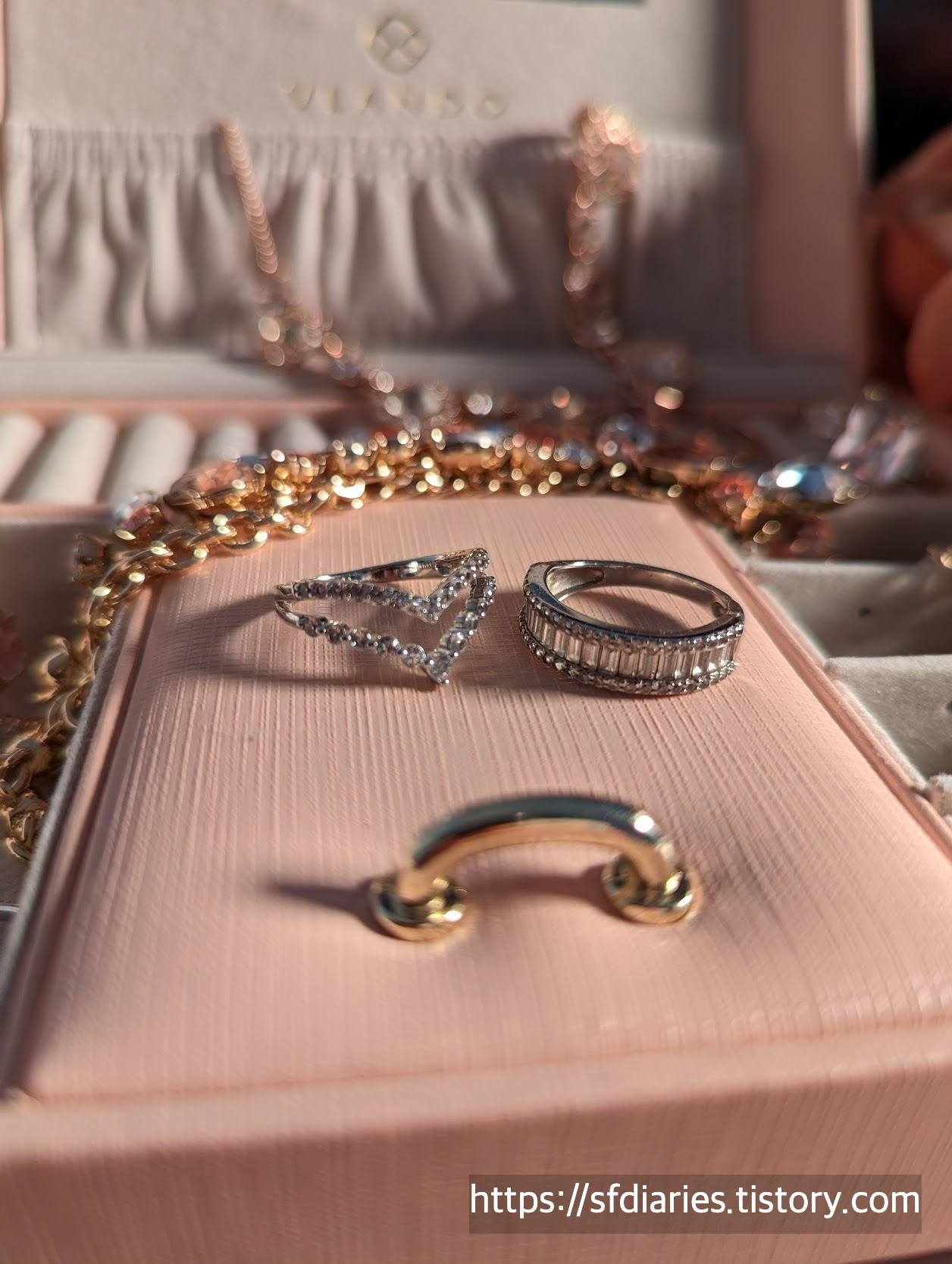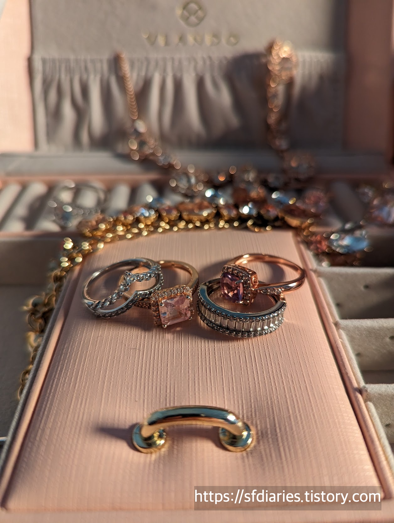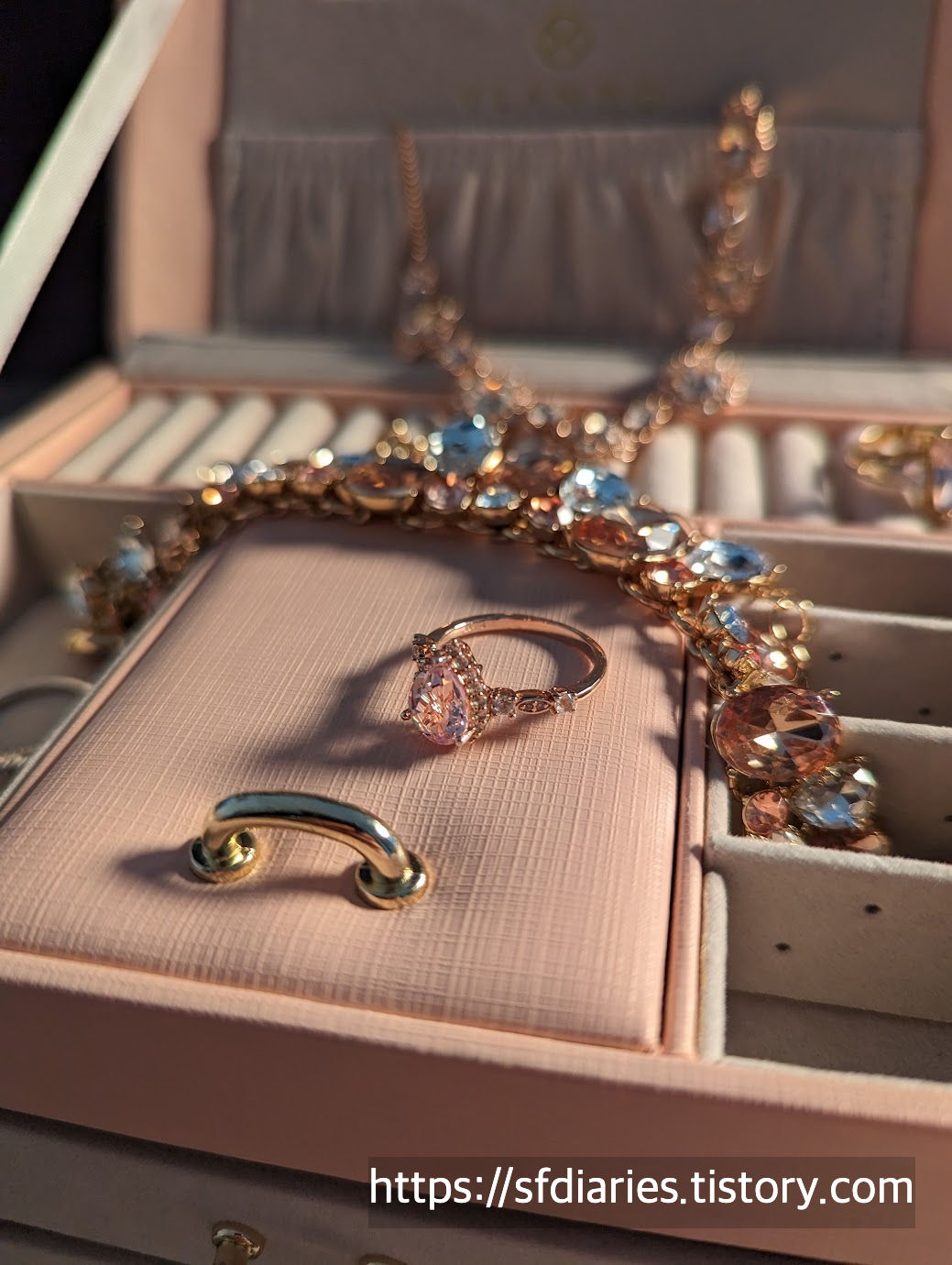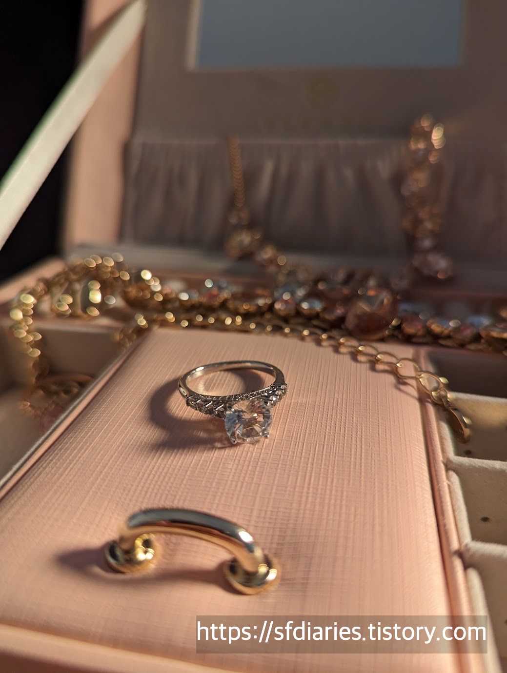 짜잔, 핑크 샴페인 사파이어링과 매치하면 이런 모습이랍니다. 로즈골드와 실버인데도 너무 잘 어울려서 특별한 날에 기분내기 좋아요.