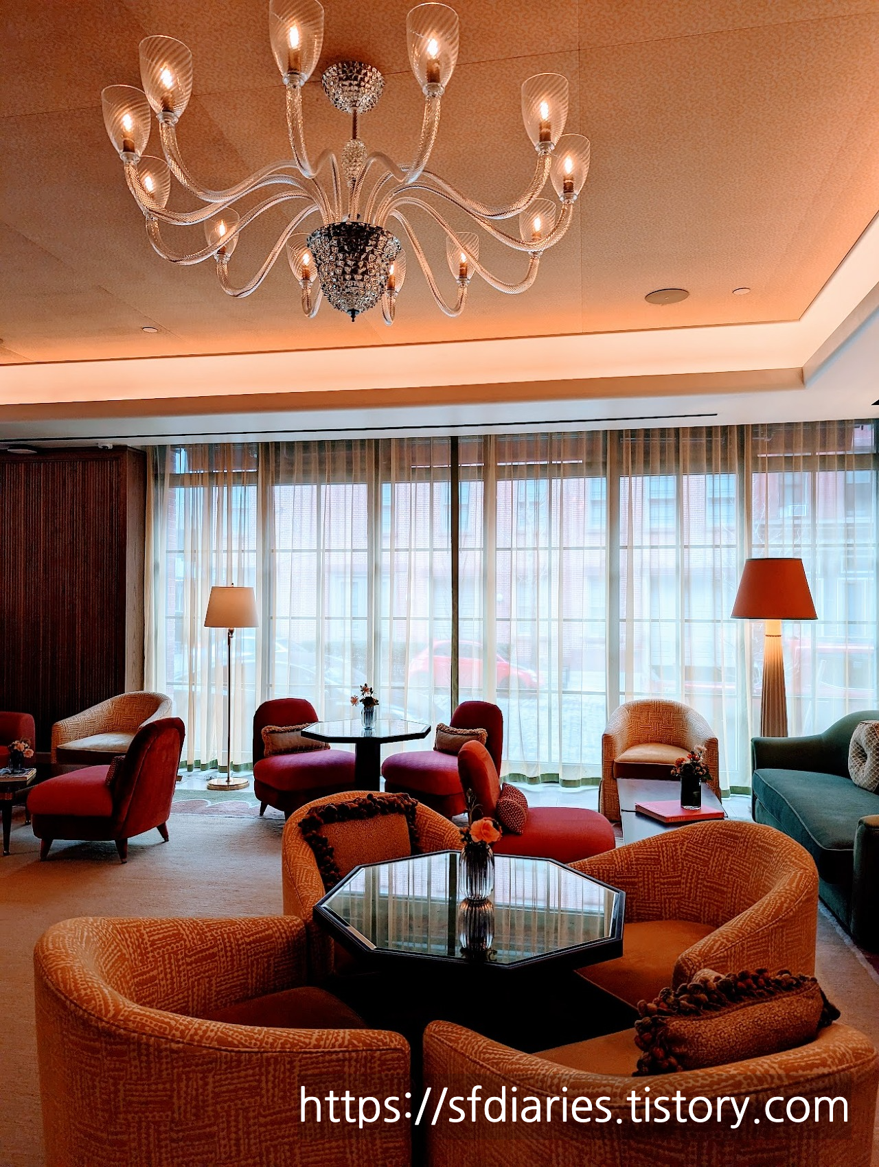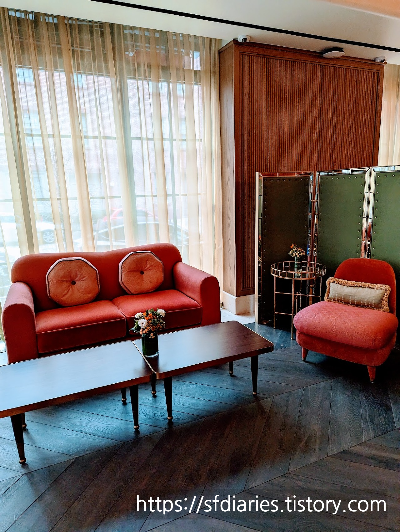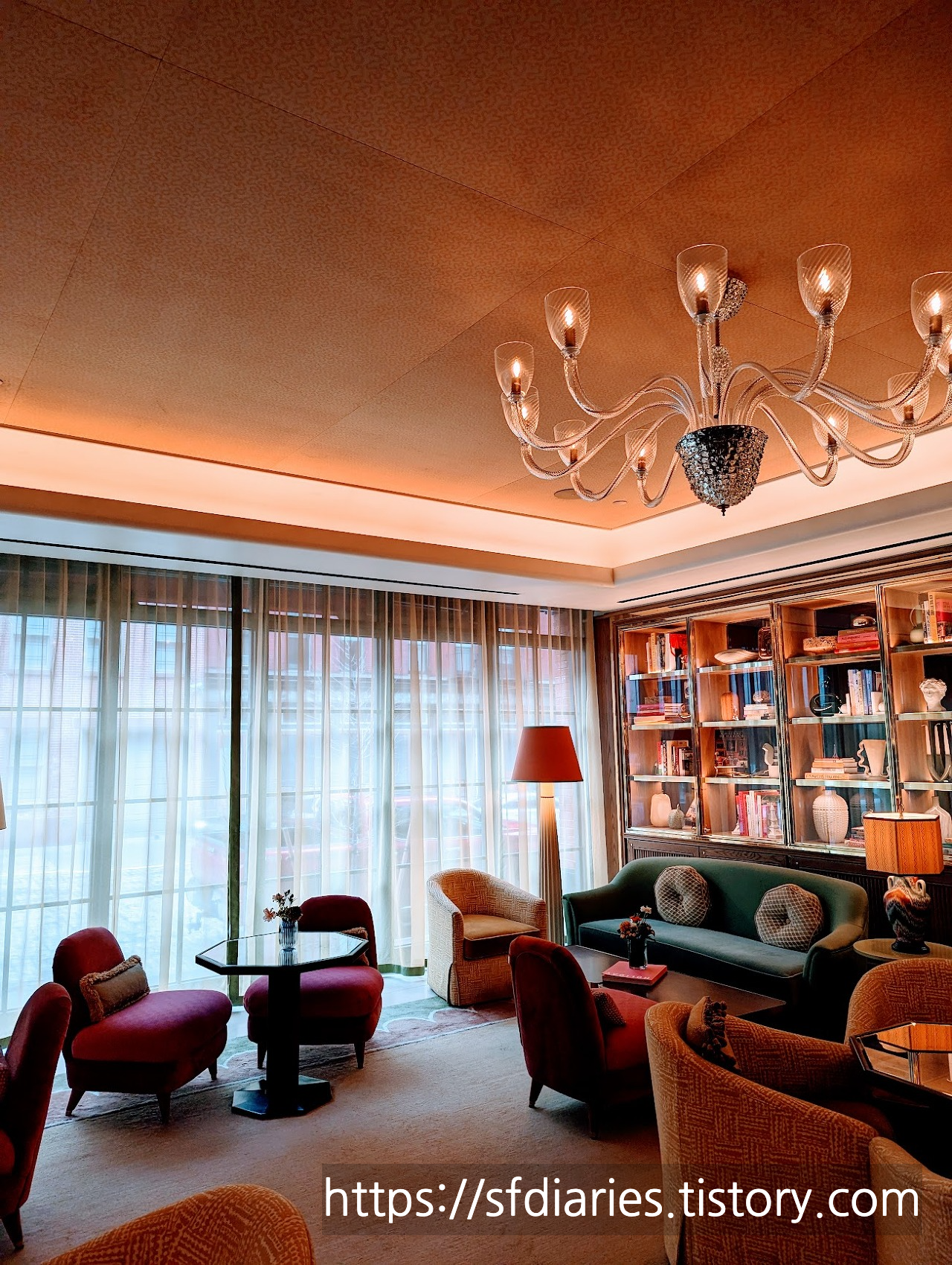 저 말고도 다른 분들이 열심히 사진도 찍고 영상도 담아가는 감성 뿜뿜 로비입니다. 가구도 가구지만 스탠드 조명이 정말 예쁘죠.