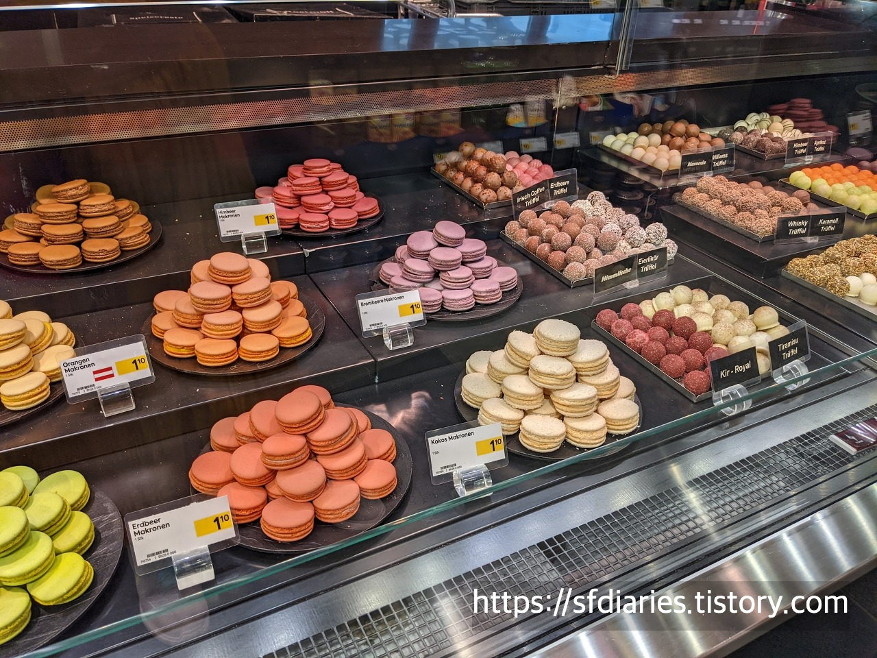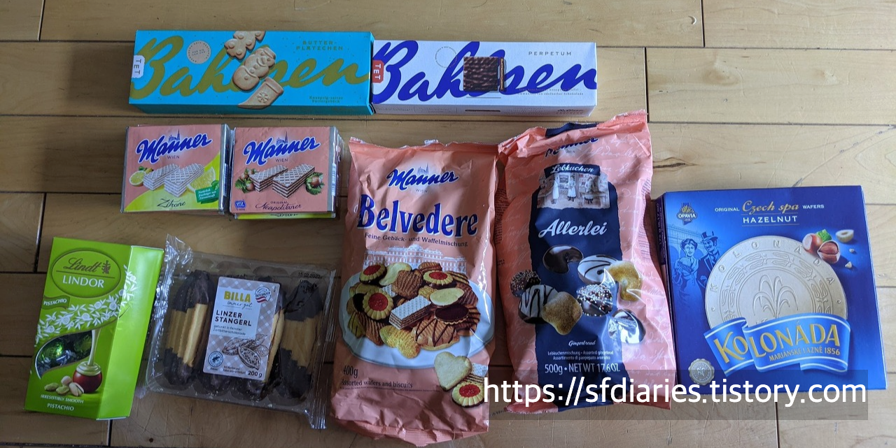 오스트리아 비엔나에서 묵은 호텔 근처의 BILLA 슈퍼(지도)입니다. BILLA는 대형체인이라 비엔나 시내 곳곳에 있지만 운좋게 호텔 주변에 조금 더 고급진 지점이 있었는데요, 물론 과일과 주스도 샀지만 솔직히 구경만 한시간 넘게 하다 왔습니다. 여기서 추천드릴 제품은 과일과 주스, 과자, 차, 초콜렛 입니다. 베이커리 섹션의 구움과자는 너무 달고 식감도 별로여서 제 입맛에는 아니었고요(아래 사진, BILLA Linzer strangerl라고 써진 과자, 웬만하면 사지 마세요), 케이크는 예쁜 카페에서 사진 찍으면서 드시는 게 나을 것 같아요. 오히려 공산품으로 나오는 일반적인 과자(아래 사진 참조)가 더 괜찮았어요. 기념품으로도 최곱니다. 오스트리아 필수 기념품 Manner과자는 환율 상황에 따라 변동이 있겠지만 일반적으로 프라하가 더 저렴하다는 이야기를 들어서 저는 프라하에서 샀어요. Kolonada라고 써진 와플과자(고프레 맛입니다)도 프라하 슈퍼에서 저렴하게 샀지만 역시 너무 달고 식감도 으스러지는 느낌이라 추천드리지는 않겠습니다.