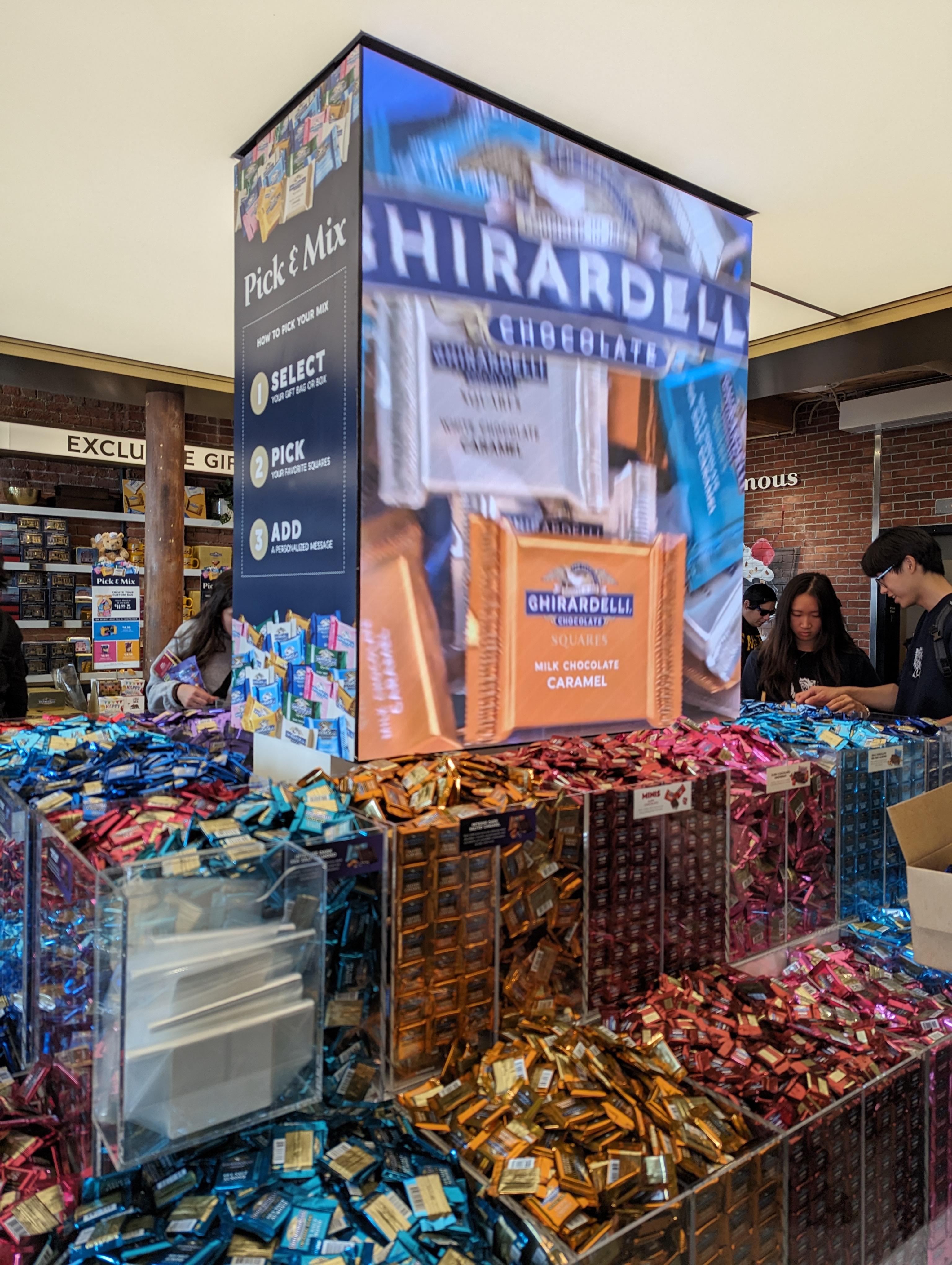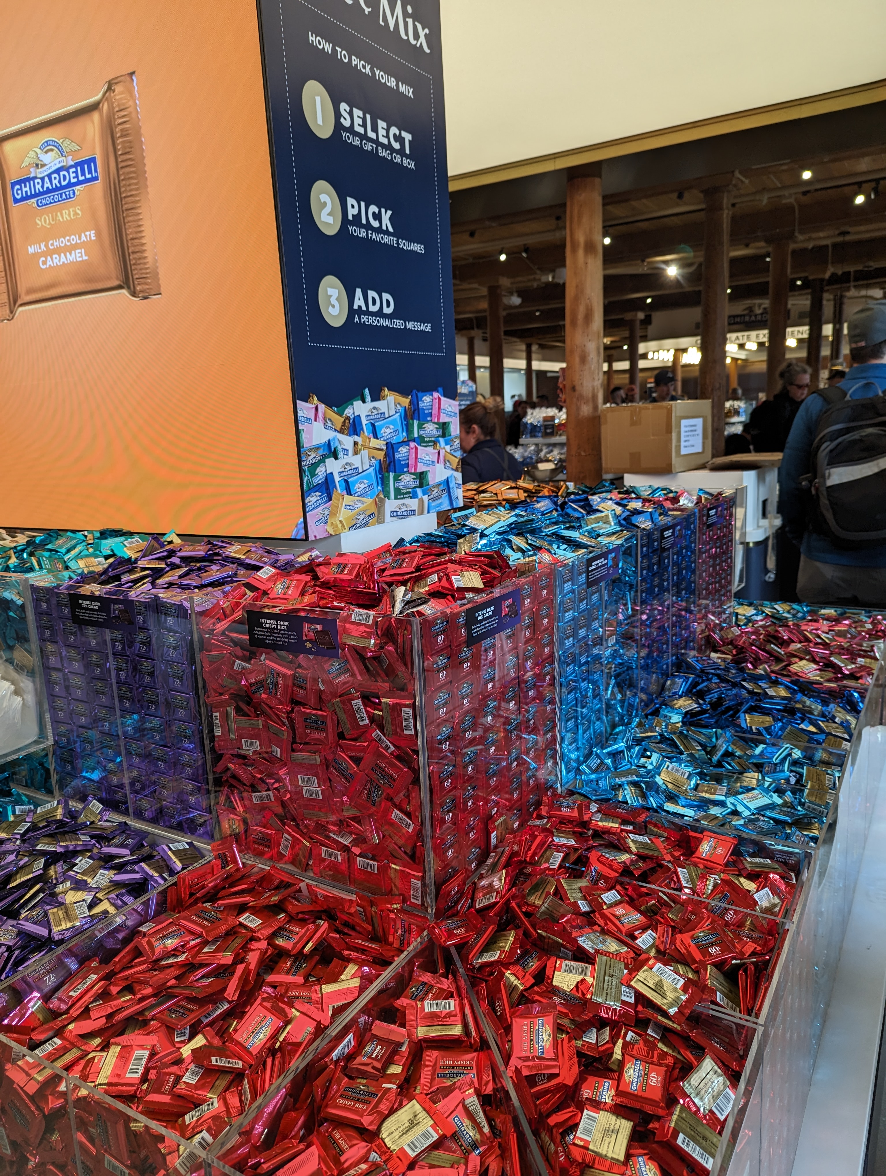 생각보다 많이 넓지는 않고요 한시간 내로 후딱 보고 나갈 수 있는 곳입니다. 단 아이스크림을 드실거라면 시간을 넉넉히 잡고 오세요. 볼거리가 생각보다 많지는 않지만 최신시설이라 깔끔하고 기랄델리 외에도 테이크아웃 카페, 패션소품점 등 귀여운 가게들이 몇몇 입점되어 있어요. 리뉴얼 전에는 초콜렛 공장도 견학할수 있었던 것 같은데 지금은 아쉽게도 없어졌어요.
