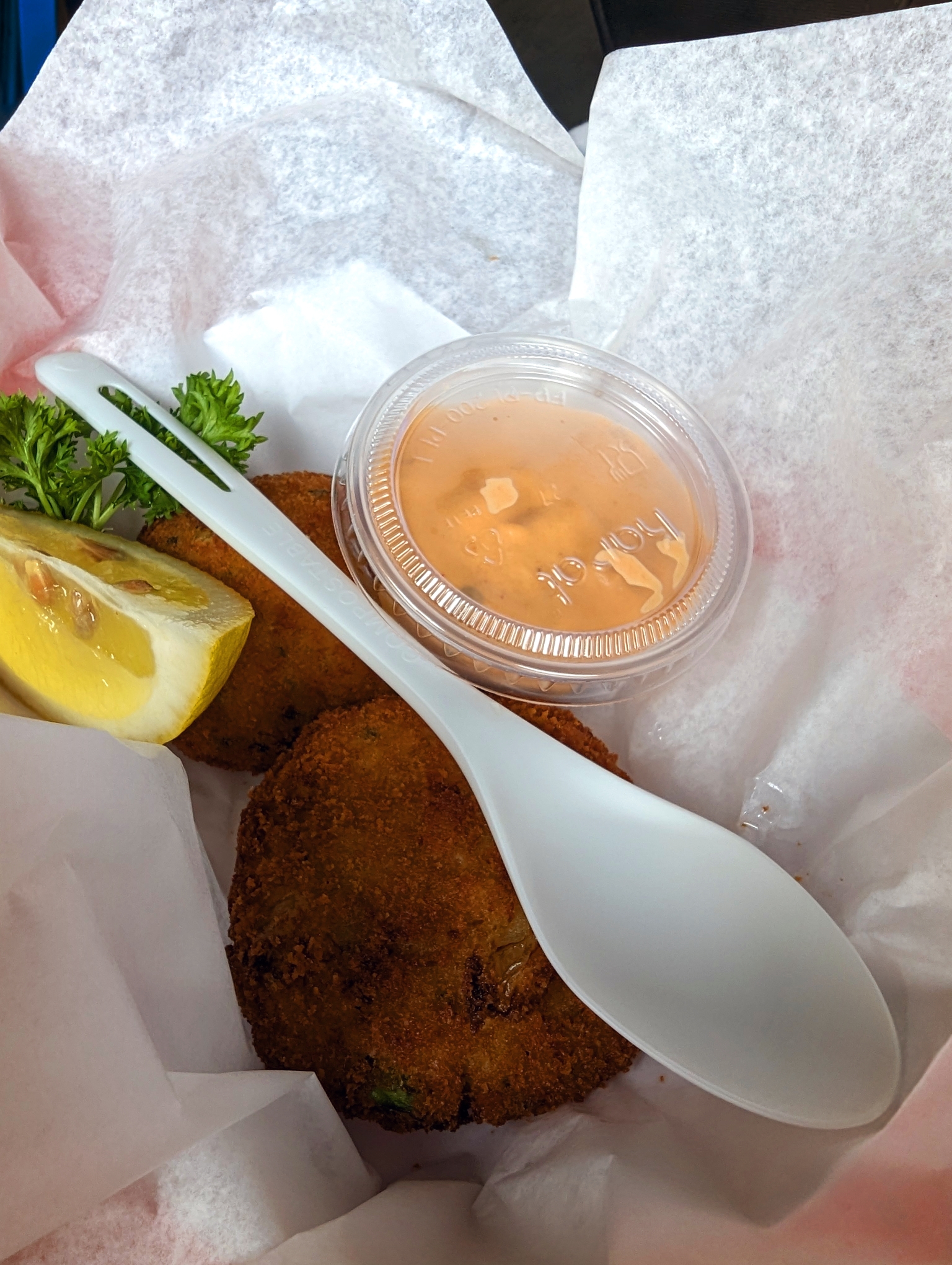 사실 클램차우더도 맛있지만 정말 추천드리고 싶은 건 이 크랩케이크에요. 단면 사진을 못찍어서 아쉬운데 게살이 정말 충실하게 들어있어요. 9달러가 전혀 아깝지 않은 맛입니다. 매콤한 에이올리 소스도 한국인 입맛에 딱입니다. 이건 꼭 드셔 보세요.