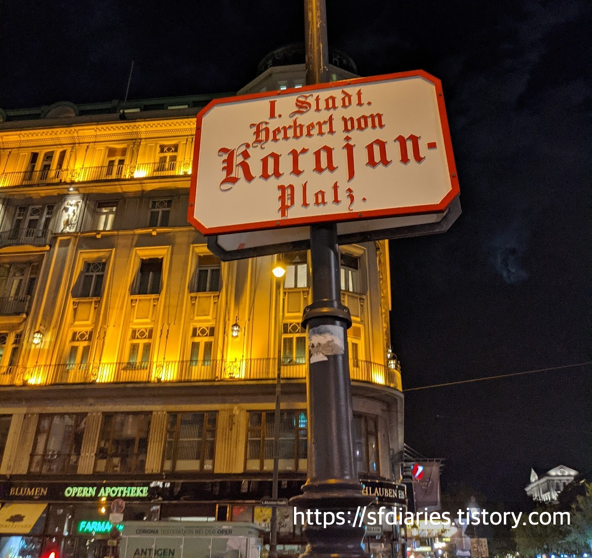 50유로 자리어도 극장에 들어서니, 우와 내가 비엔나에서 오페라를 보러 왔다니, 내 인생에 이런 호사가 다있네! 라는 생각이 들었어요. 심지어 오페라 하우스 바로 앞 광장의 이름이 카라얀 플라츠입니다. 오스트리아가 낳은 전설의 지휘자님이시죠. 이 분의 이름을 딴 광장이 있다는 사실도 몰랐지만 이름만 봐도 두근두근 하더군요.