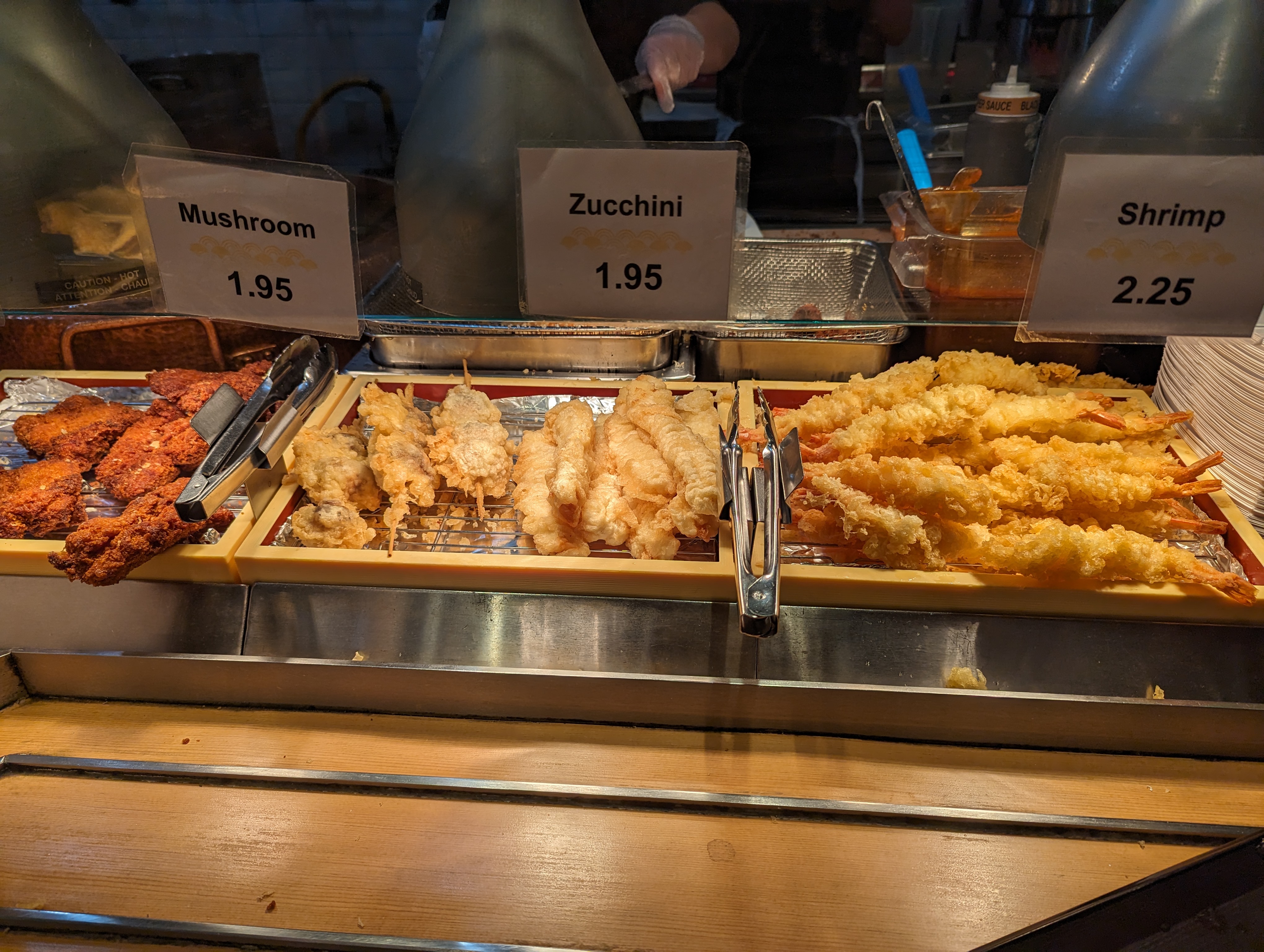 에비텐이 개당 2.25면 정말 괜찮죠. 사실 샌프란시스코에서 일식집을 가면 주로 중국계 이민자분들이 운영하는 곳이 많은데요, 일식 텐푸라 맛을 기대하시면 안되거든요(...). 다행히 마루가메제면은 튀김옷 상태가 괜찮아보여서 기대가 되더군요.
