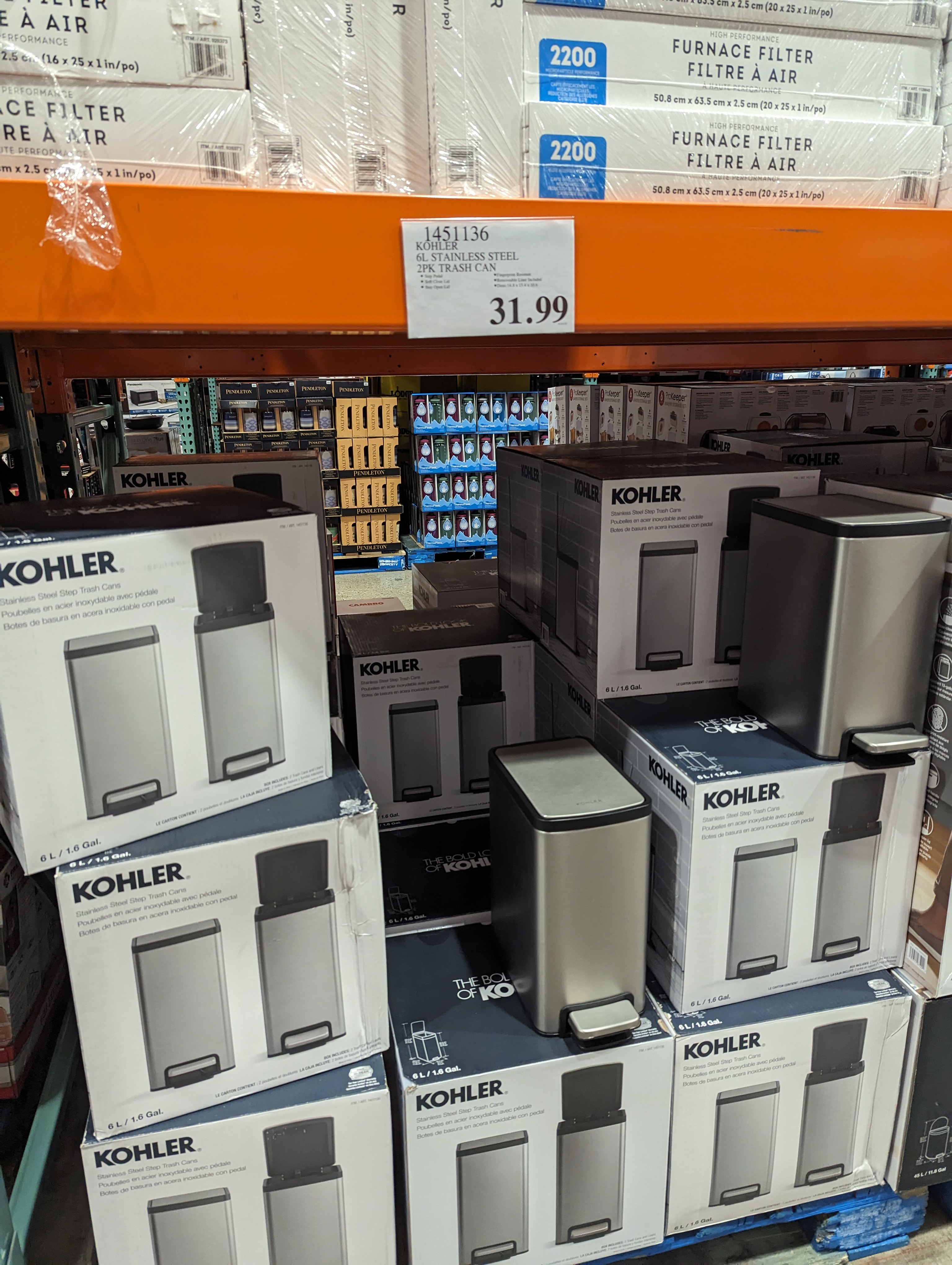 돌고 돌다가 드디어 작은 쓰레기통도 찾았어요. Kohler 제품이고 두개들이 한세트가 32달러에요. 이건 살것 같아요.