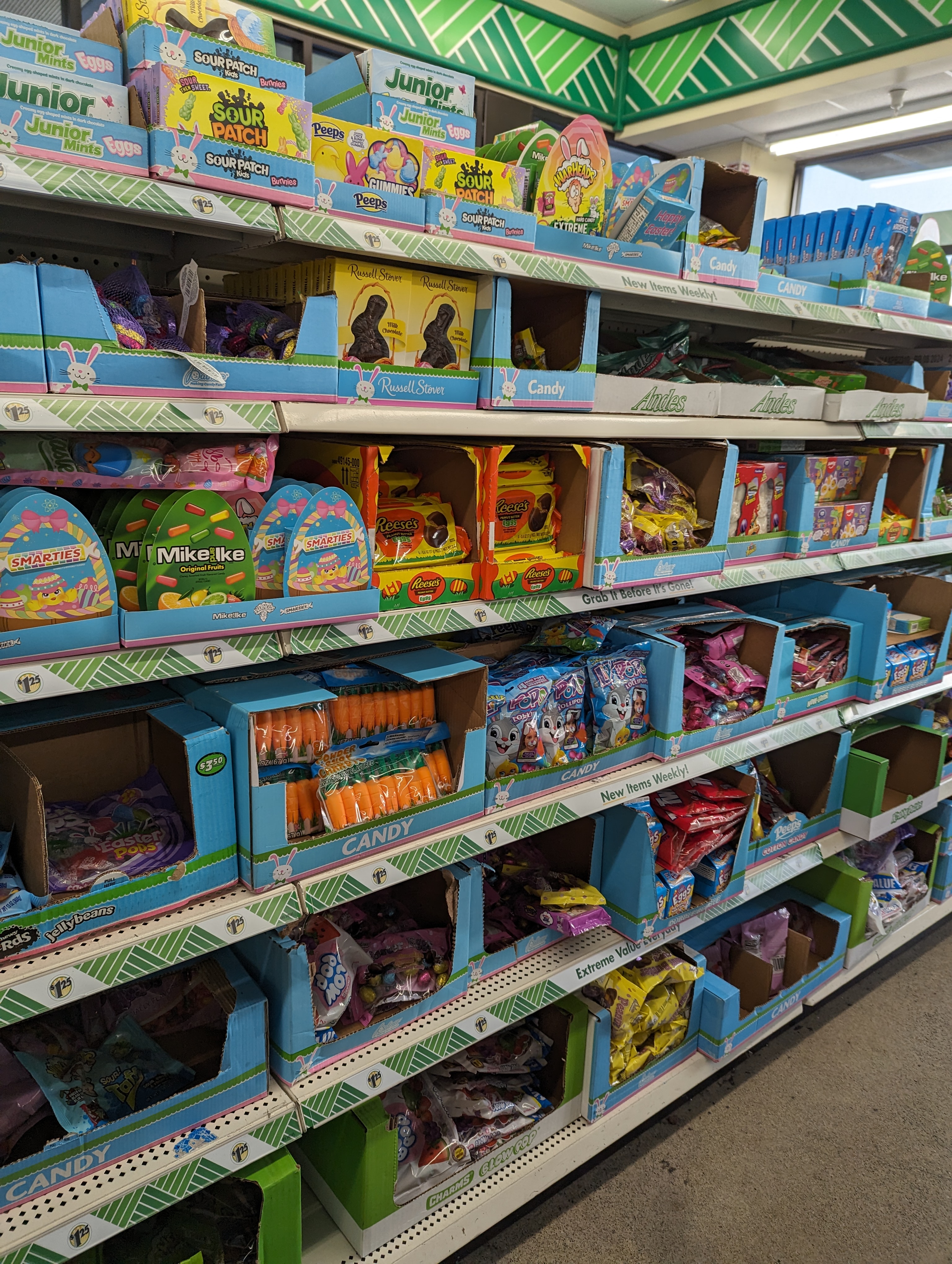 토끼 모양 계란 모양의 초코렛 및 사탕류도 엄청나게 준비되어 있습니다. 달러트리에도 일반 브랜드의 사탕류가 많긴 한데요, 일반 슈퍼에서는 잘 안보이는 브랜드들도 있으니 아는 브랜드인지 잘 확인하시고 구매하시는 게 좋답니다.