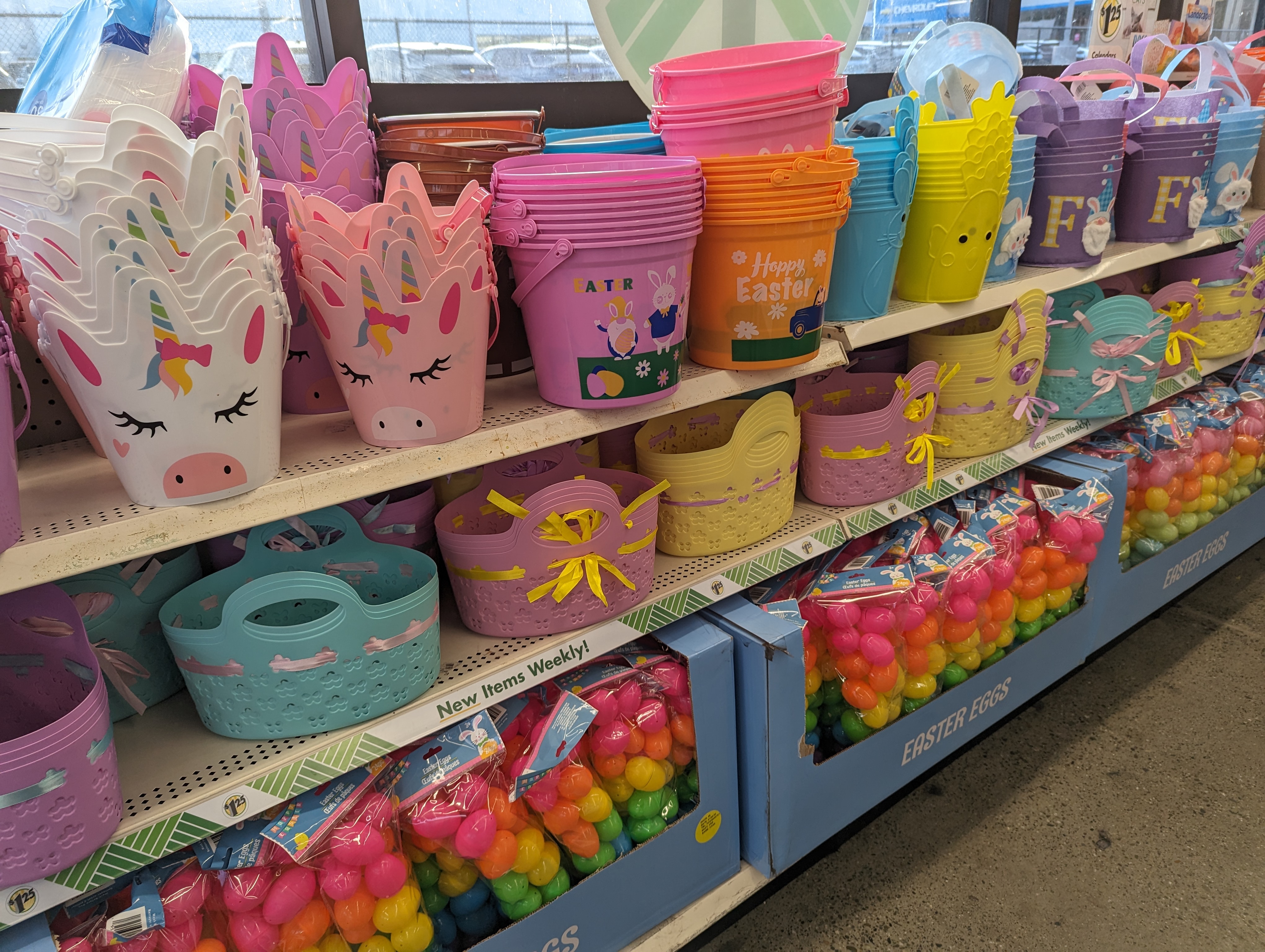발렌타인 데이가 지나면 바로 부활절 Easter 제품이 넘쳐나는데요, 달러트리도 예외는 아니죠. 이렇게 이스터 에그 바스켓을 꾸릴 수 있는 귀여운 바구니들 및 달걀모양의 플라스틱 통들이 색상별로 다 나와요. 가격이 가격인지라 품질이 엄청 우수하진 않지만 일년 내내 쓰는 제품이 아니라서 굳이 대단한 내구성을 가진 제품이 딱히 필요하지 않은 것도 사실이니까요.