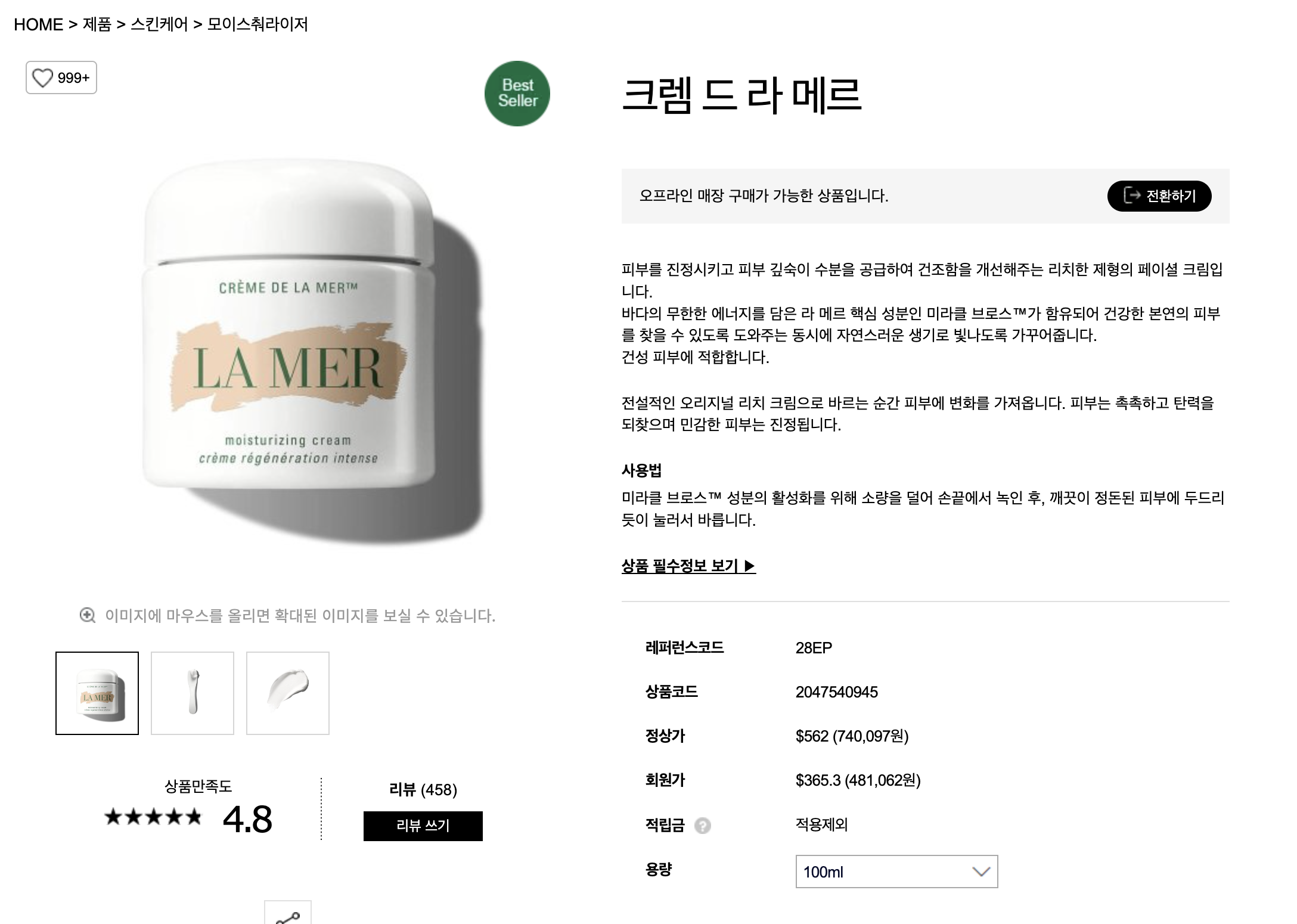 2024년 3월 18일 기준 크렘 드 라메르가 미국 현지 백화점에서는 570달러(+ 세금), 샌프란시스코 공항 면세점에서는 513달러, 그리고 한국 면세점에서는 무려 365달러에 판매되고 있네요. 역시 한국 공항 면세점의 압승입니다. 이건 오늘 세일 중인 점도 있네요. 출국일정에 따라 변동 있으실 것 같으니 공홈에서 꼭 비교해보시고 구매하세요.