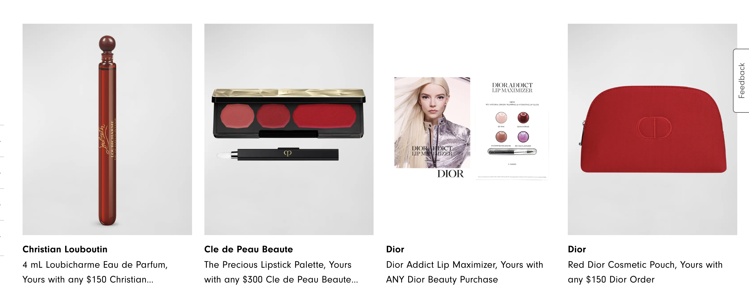 예를 들어, 지금 니먼마커스 Neiman Marcus 공홈을 보니 디올 150달러 이상 구매시 레드 파우치를 증정하고 있고요,