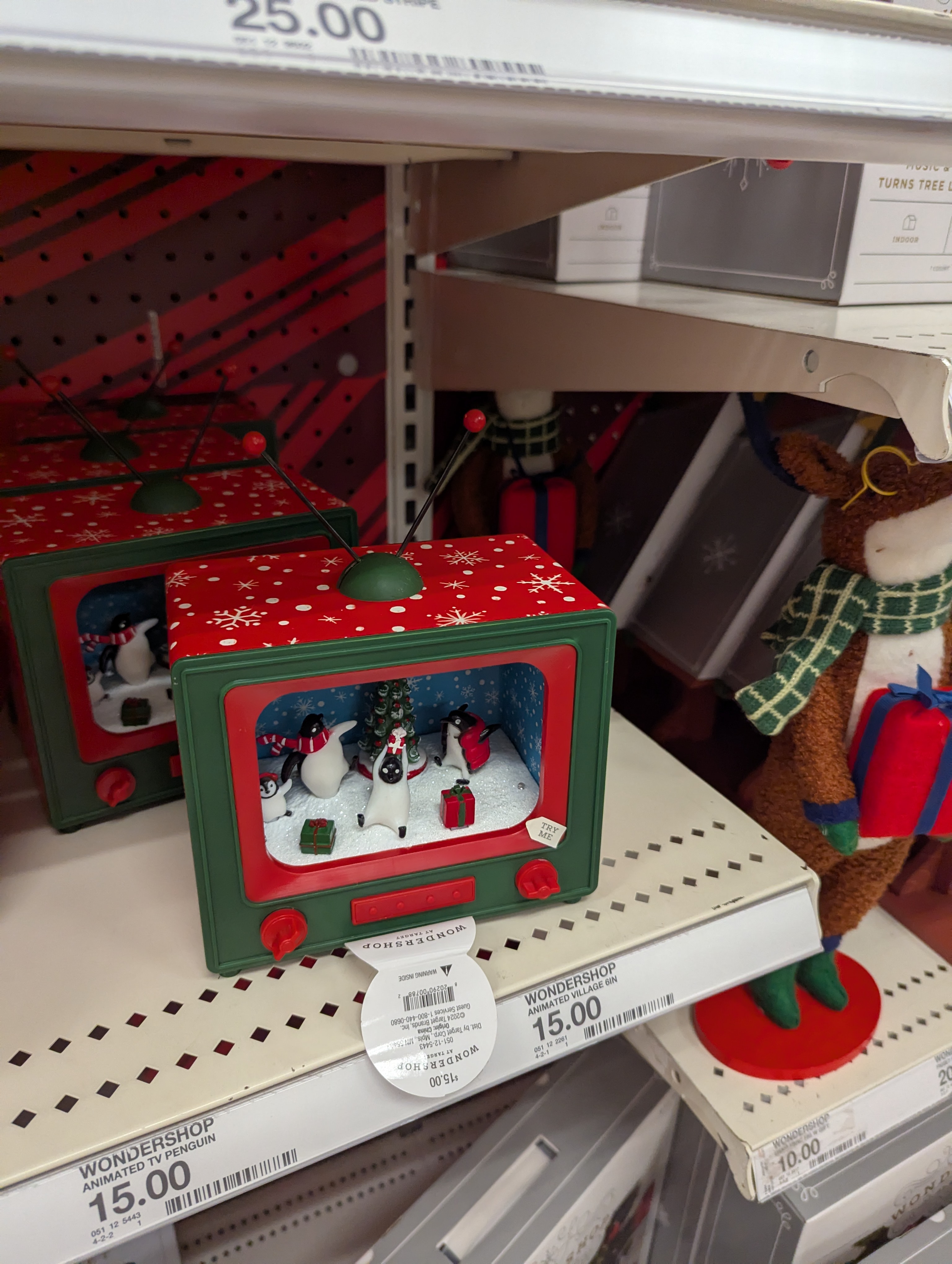 레트로 티비 펭귄은 전원을 켜면 불이 들어오고 트리가 빙글빙글 돌아갑니다. 15달러에 이 정도 성능이면 너무 신박한것 같아요. 구경만으로도 벌써 크리스마스 분위기를 마음껏 느낄 수 있는 타겟 소개해드렸어요. 즐거운 쇼핑 되시고요, 읽어주셔서 감사해요.