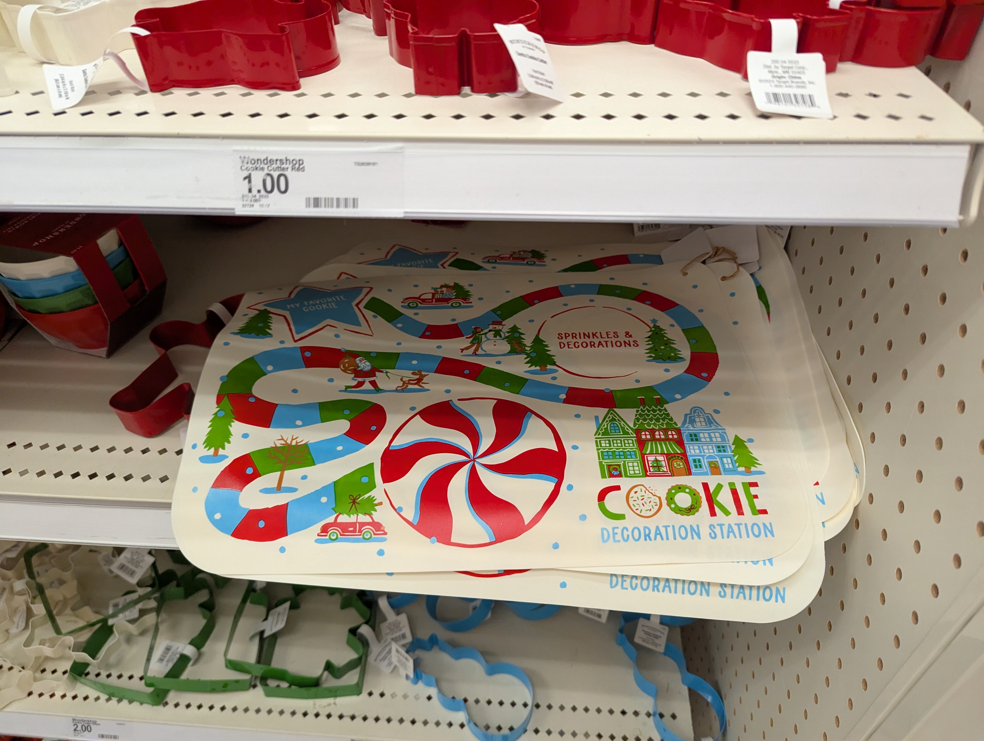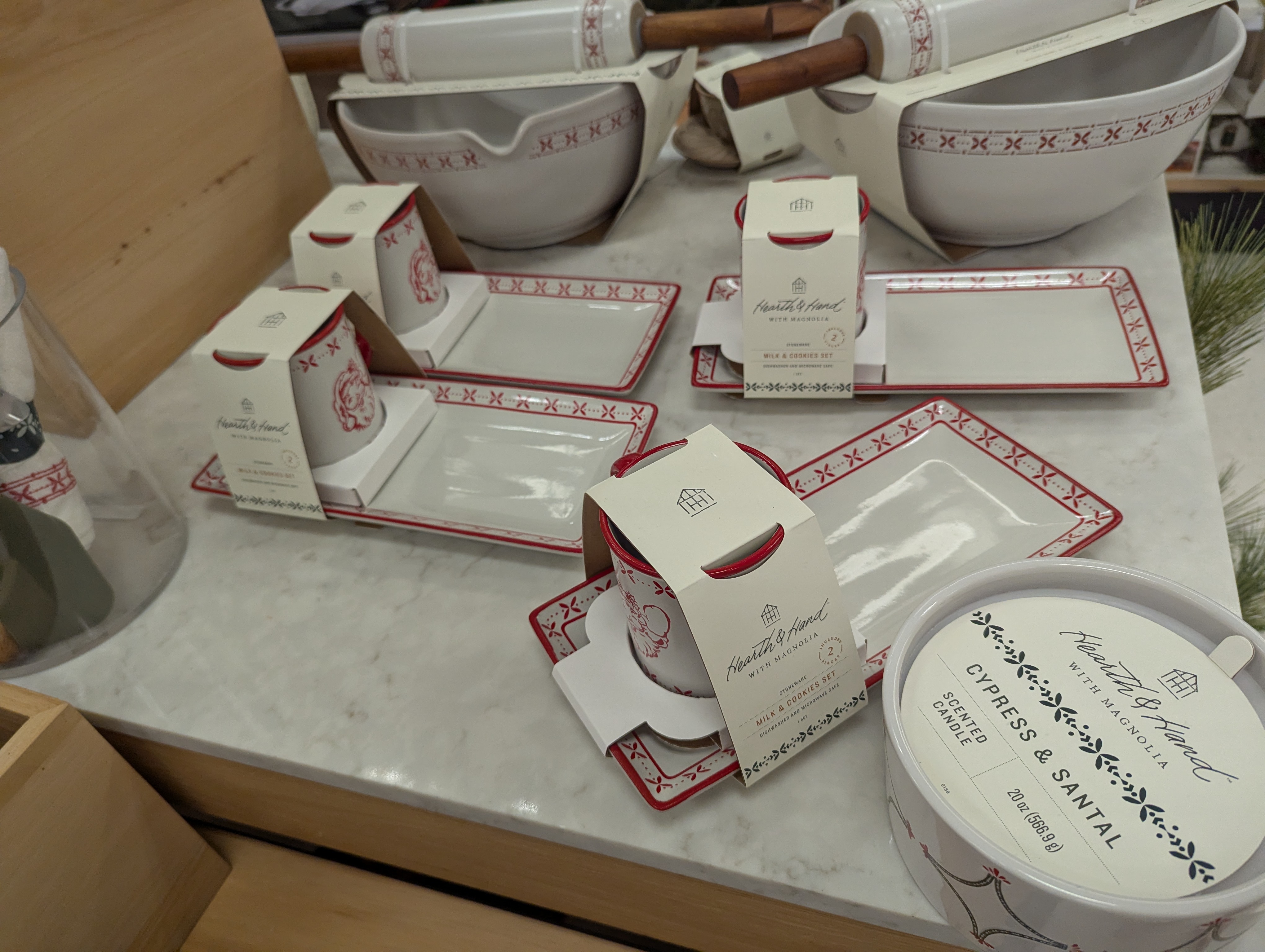 페퍼민트 캔디 및 캔디캐인 문양의 쿠키 커터 및 쿠키 상자, 앞치마, 식탁보 등 다양한 베이킹 용품도 보입니다. 미국인들은 크리스마스에 베이킹을 많이 해서 그런 것 같아요. 오랜만에 가족들이 모인 김에 같이 쿠키도 만들고 많이 만든 김에 나눠 먹고 그러는 거죠.