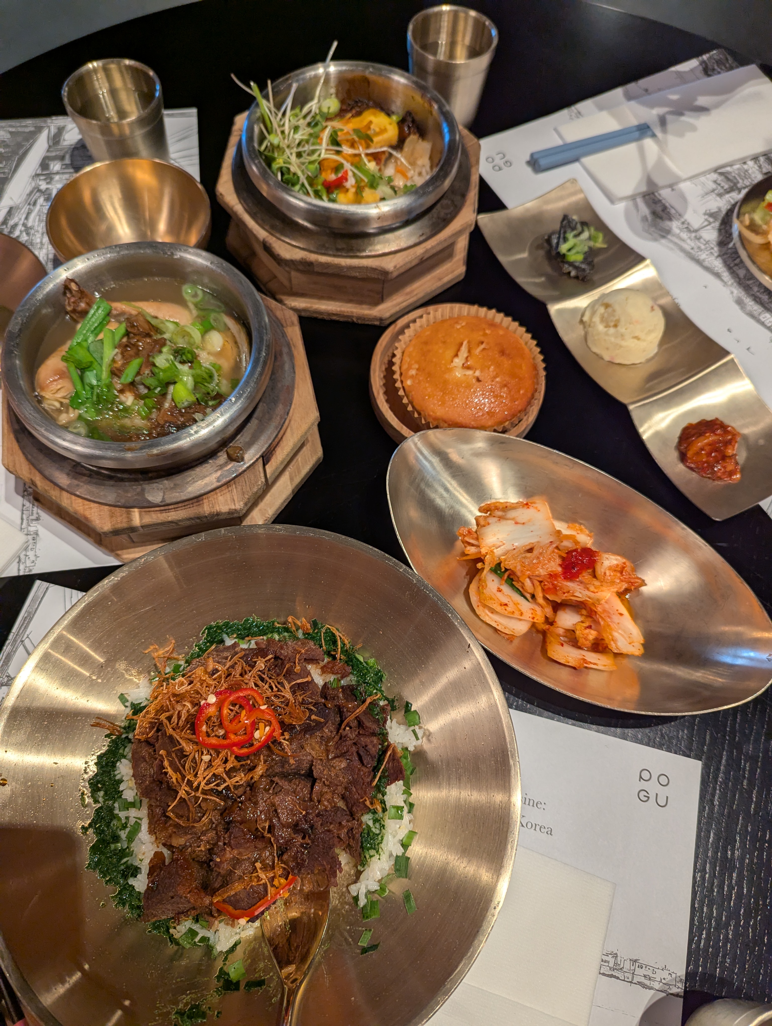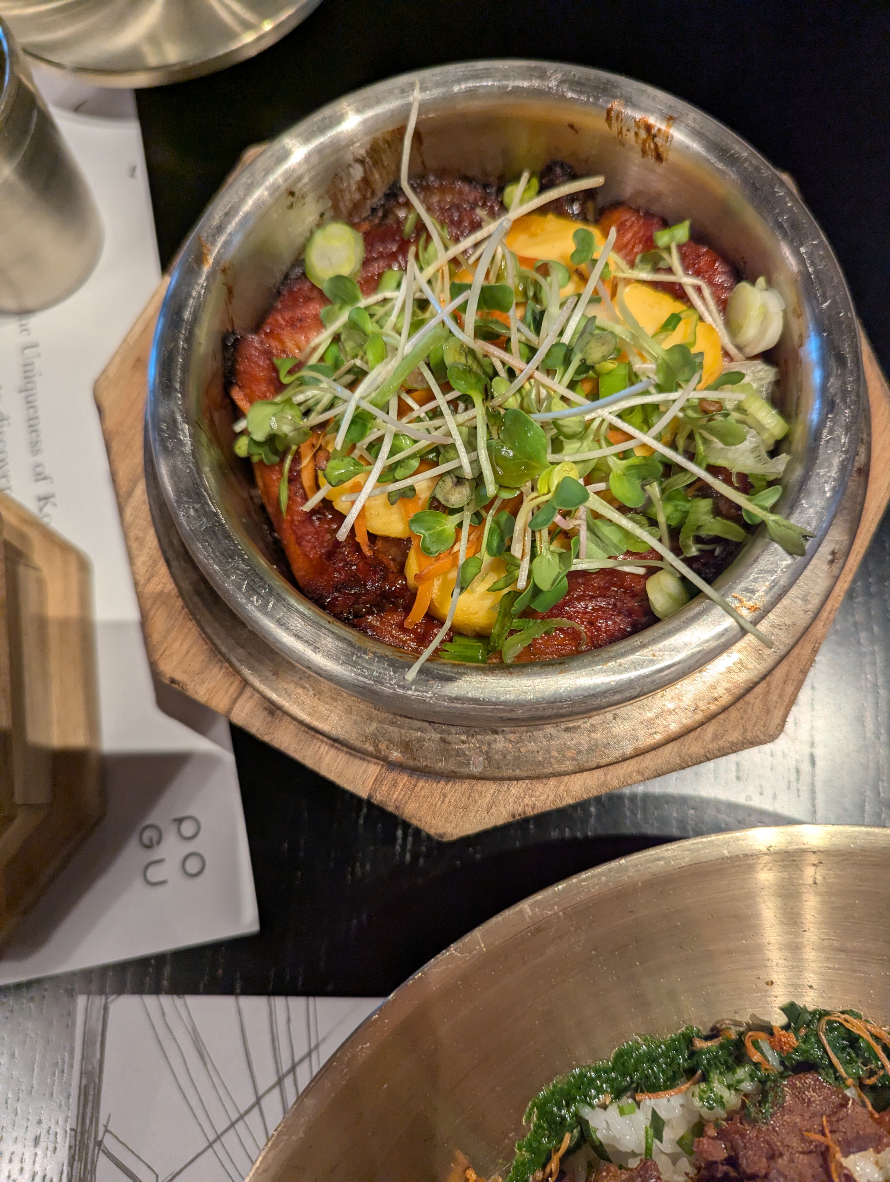 음식은 금새 나와요. 메뉴는 불고기 덮밥 ($28), 전복 삼계탕 ($38), 장어 덮밥($28)을 주문했어요. 겉절이와 밑반찬 (리필 가능), 옆집 바스키아 베이커리의 술빵 1피스가 기본으로 제공됩니다. 어머님이 메밀국수에 관심을 보이셨는데 이거 차가운거라고 말씀드렸더니 삼계탕으로 바꾸시더라고요. 한국인이라면 당연히 메밀국수는 차갑다고 생각하는데 외국인들은 buckwheat noodle 이렇게 적어놓으면 따뜻하다고 생각하는 경우가 많을 것 같아서 옆에 cold noodle이라고 소개해 주셔도 좋지 않을까, 생각되네요.