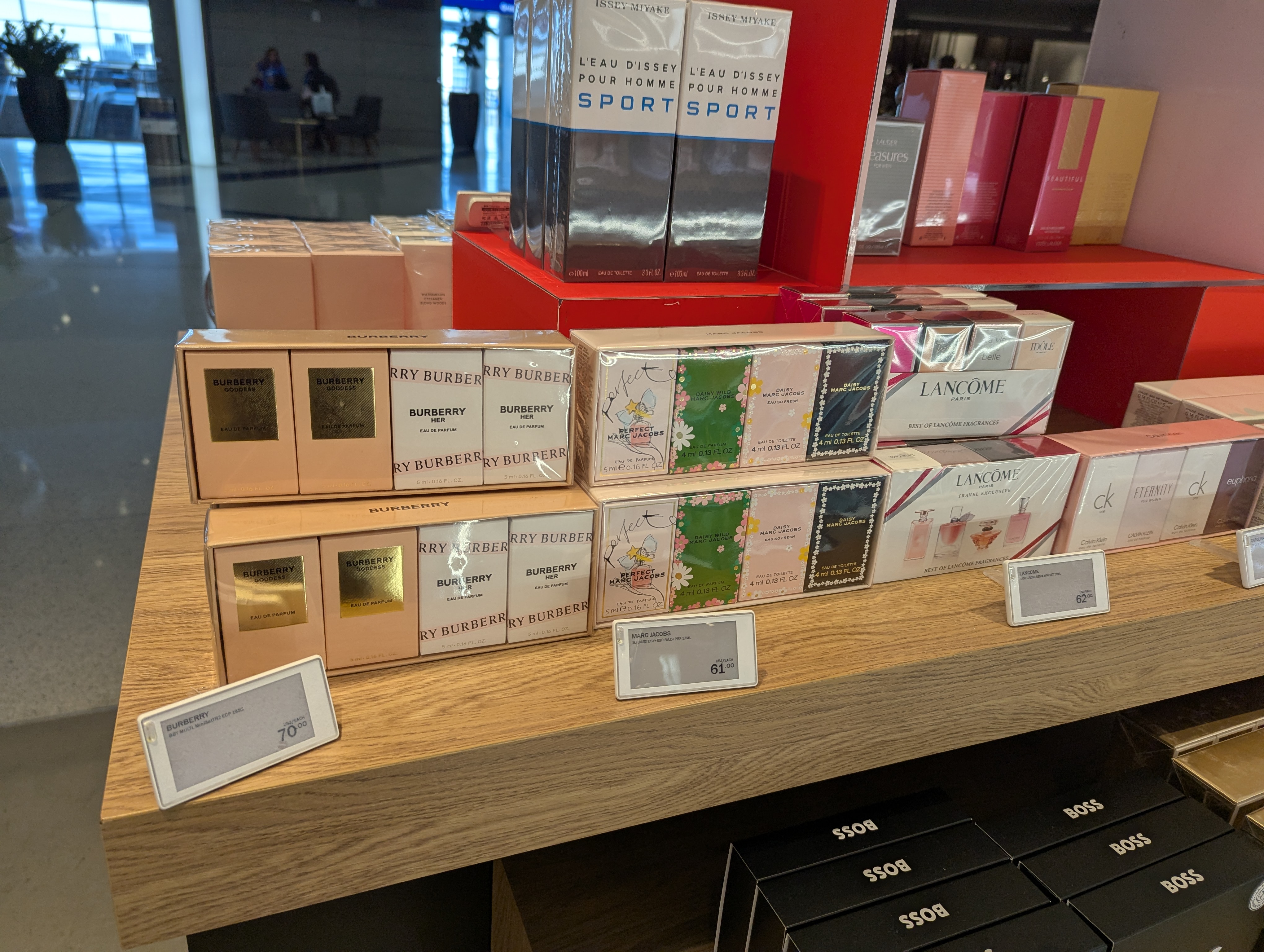 향수 폭탄세일 느낌의 매대입니다. 대놓고 가격표를 전면에 내세워서 29달러부터 시작하는 합리적인 가격을 강조하고 있는데요, 유행이 조금 지난 향수들이지만 잘 보시면 취향에 맞는 제품을 건지실 수도 있어요. 샌프란시스코 공항에서는 잘 안보였는데 돌아오는 길에 보니 샌프란 공항에도 구석이긴 하지만 동일한 Hot fragrance deals 매대가 있더라고요.