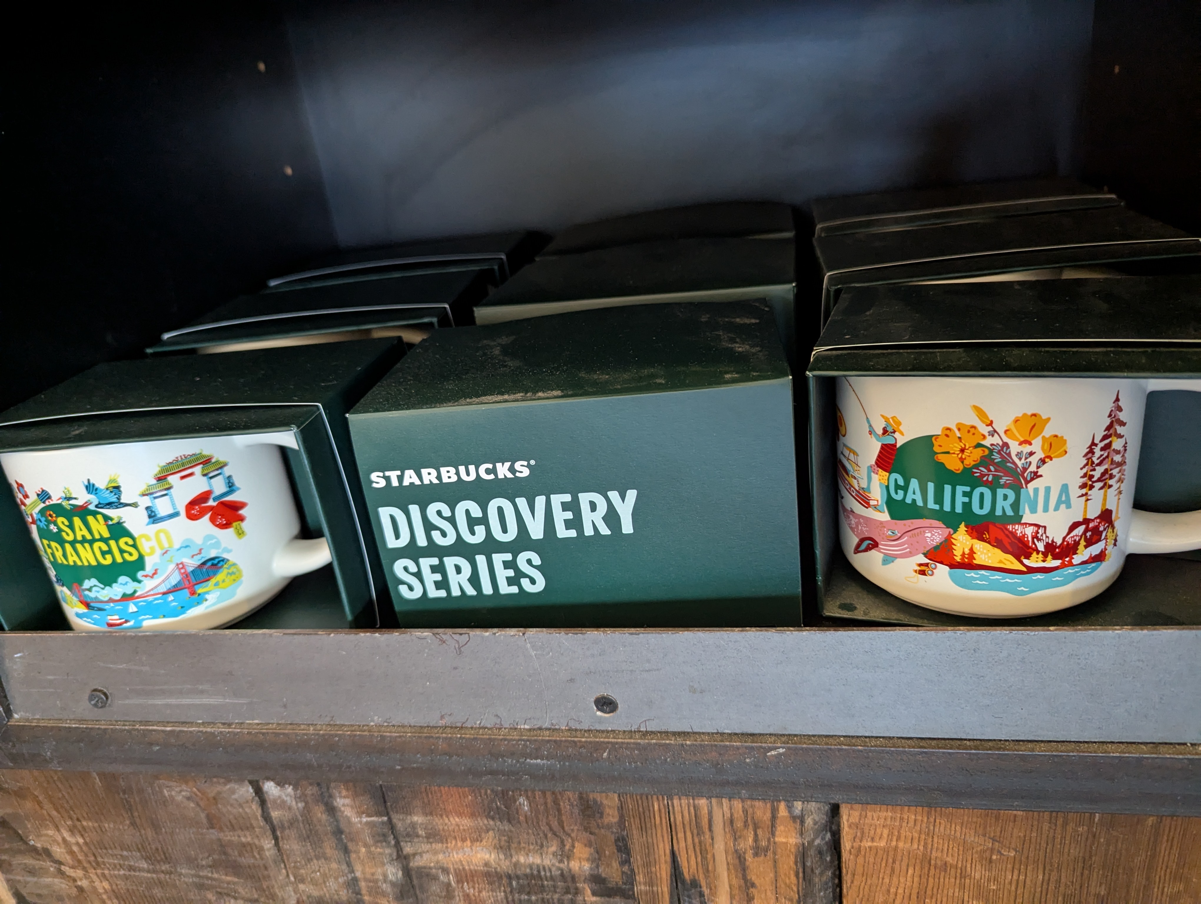 그리고 오늘의 하이라이트, 샌프란시스코 및 캘리포니아 한정 디자인 텀블러들이에요. 각각 틴 재질에 프린트된 제품도 있고 투명한 플라스틱으로 둘러진 디자인도 있어요.