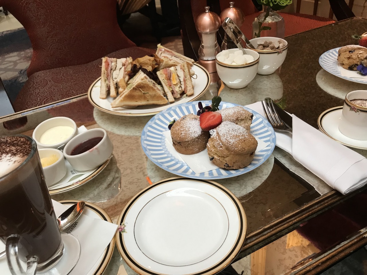 여기는 차보다 스콘이 먹고 싶어서 간 곳이에요. 영국 스콘도 맛있지만 아일랜드 스콘이 조금 더 부드럽고 버터의 맛이 사는 느낌이 나더군요. 스콘 한접시를 시키면 3개를 줍니다. 양이 많으니 한번 드시고 더 주문하시는 게 나아요. 저희는 모르고 처음부터 1인당 스콘 한접시씩 시켰다가 엄청 남기고 왔어요. 호텔에서 먹는 스콘의 최대 장점은 클로티드 크림과 잼을 넉넉하게 종류별로 맛볼 수 있다는 것이죠. 영국 런던에서 먹은 스콘에 대해서는 곧 포스팅 하겠습니다.