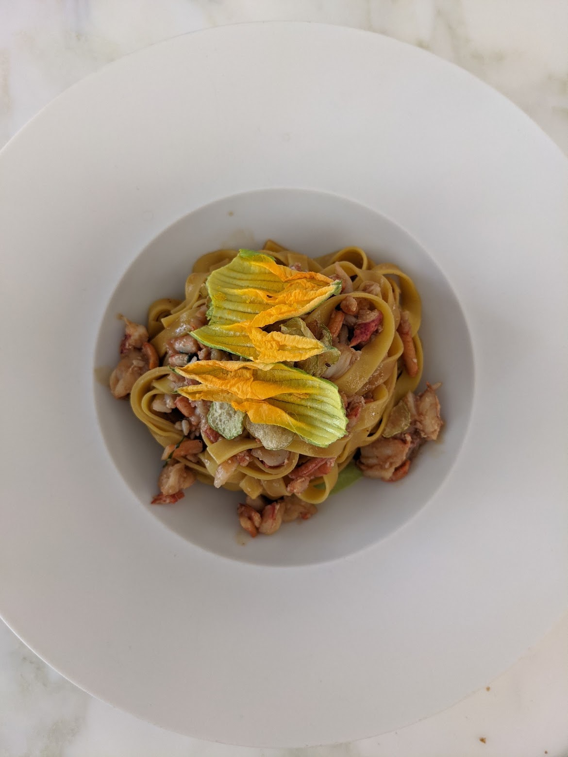 저희는 밥만 먹고 총 101유로 지불하고 왔어요. 음료수는 따로 시키지 않았습니다. 랍스터 탈리아텔레 파스타와 송아지 커틀렛을 주문했는데, 둘 다 맛있어서 싹싹 비우고 왔어요. 보시는 것처럼 랍스터를 아낌없이 넣었고 면의 식감과 소스도 일품이어서 돈이 아깝다는 생각은 들지 않더군요.
