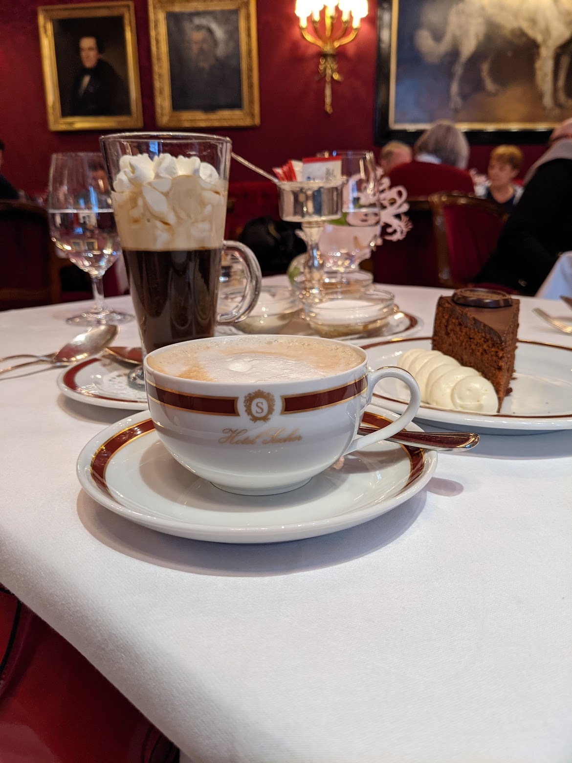 커피도 사실 한국에서 마시는 아인슈페너가 훨씬 맛있지만 이것 역시 전통의 맛을 체험한 것으로 해둡시다. 굳이 비교를 해드리자면 비엔나의 커피는 크림이 한국보다 훨씬 꾸덕해요. 좀 느끼하리만치 꾸덕하고 달달한 맛은 없습니다. 커피도 좀 쓰고요.