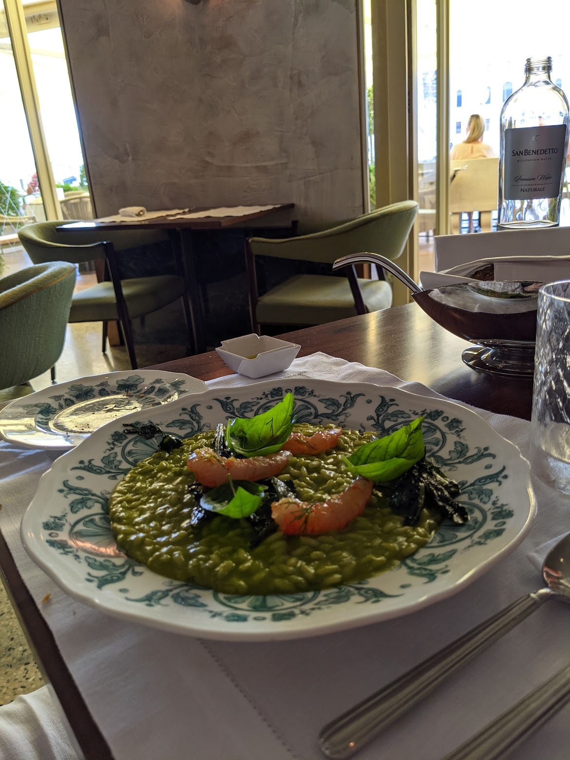 식사는 단새우 리조토와 조개를 곁들인 감자 뇨끼 같은 파스타를 주문했고요, 다 맛있게 잘 먹고 왔습니다. 참고로 여기는 런치 커버차지가 있어요. 지금은 6유로입니다.