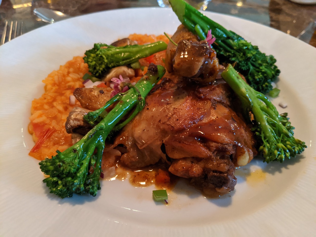 주로 다른 메뉴 두개를 시켜서 나눠먹는 편이지만 런치 메뉴 선택지가 한정적이고 이 메뉴가 너무 맛있어 보여서 둘다 닭요리를 주문했습니다. 정말 부드럽고 만족스럽게 잘 먹었어요. 브로콜리니도 적당히 익혀서 식감이 좋았고요. 리뷰를 보면 서비스에 불평하시는 분들이 있는데, 저희가 갔을 때는 그런 문제는 없었습니다. 사람이 적어서인지 서비스도 친절하고 정중했고 음식도 제 시간에 나왔습니다. 외식을 할 때는 어디를 가느냐도 중요하지만 언제 가느냐도 만족도에 큰 영향을 주는 것 같아요. 아무리 좋은 식당이라도 눈코뜰새 없이 바쁠 때 가면 주문에 실수가 생기거나 음식을 엄청 기다려야 하거나 하는 경우도 종종 있잖아요.